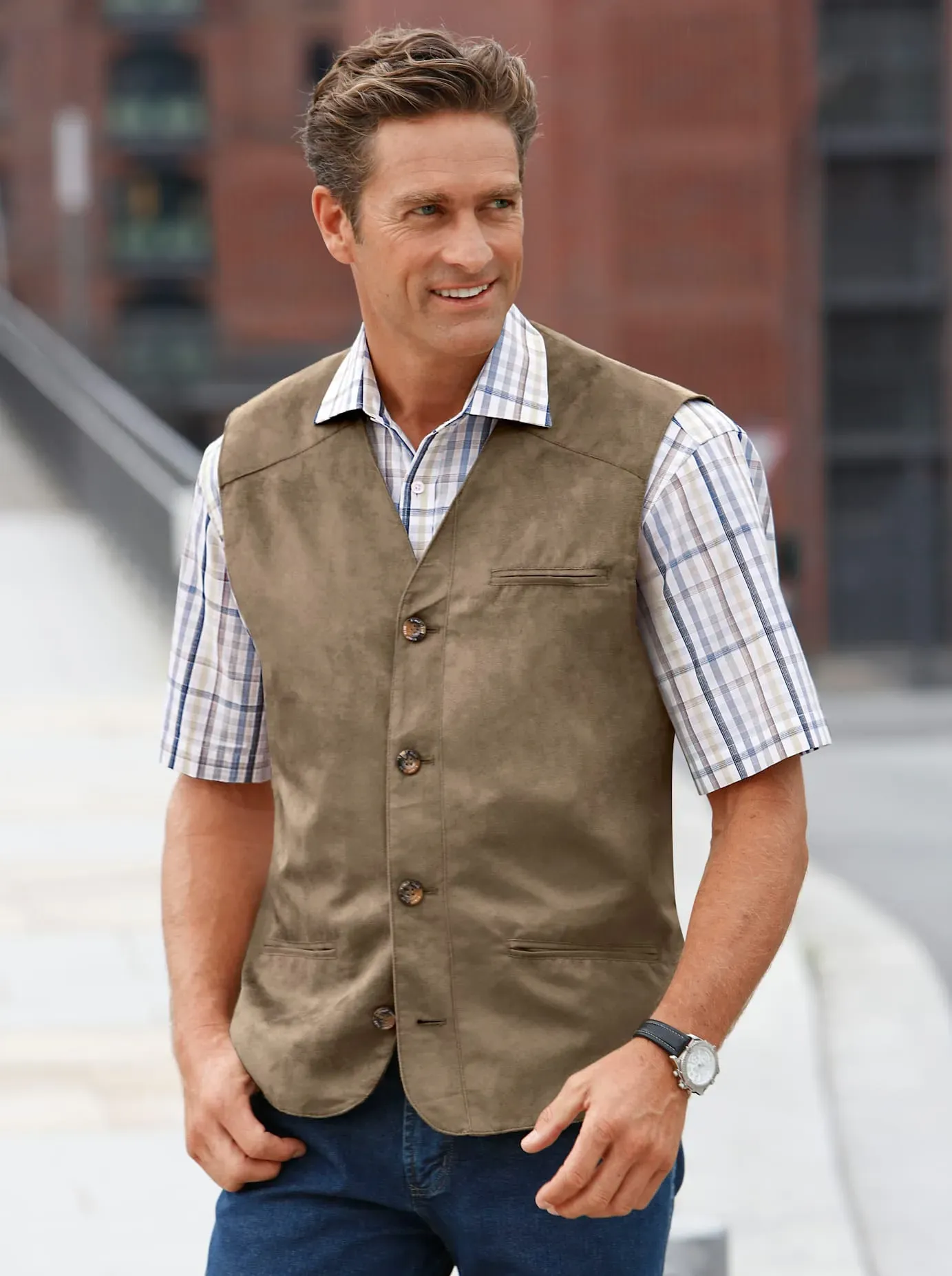 Kategorie: Herren-Westen - Marco Donati - GTIN:8935200984961 - Weste in edler Veloursleder-Optik. Mit paspelierten Taschen, 1 auf Brusthöhe. 2 Innentaschen, 1 mit Reiß-, 1 mit Klettverschluss. Marco Donati-Stickerei im Nackenspiegel. Länge in Gr. 50 ca. 68 cm. Pflegeleichte Qualität. 100% Polyester. Futter: 100% Polyester. Maschinenwäsche., Material: Materialzusammensetzung: 100% Polyester, Pflegehinweise: Maschinenwäsche, Optik/Stil: Optik: unifarben, Farbe: Farbbezeichnung: taupe, Passform/Schnitt: Kragen: ohne Kragen, Details: Kapuze: ohne Kapuze, Taschen: Eingrifftaschen, Verschluss: Knopfverschluss - 49,99 Euro bei baur.de - gefunden von billiger.de ![]() ![]() Lederimitatweste MARCO DONATI, Herren, Gr. 62, grau (taupe), 100% Polyester, unifarben, Westen