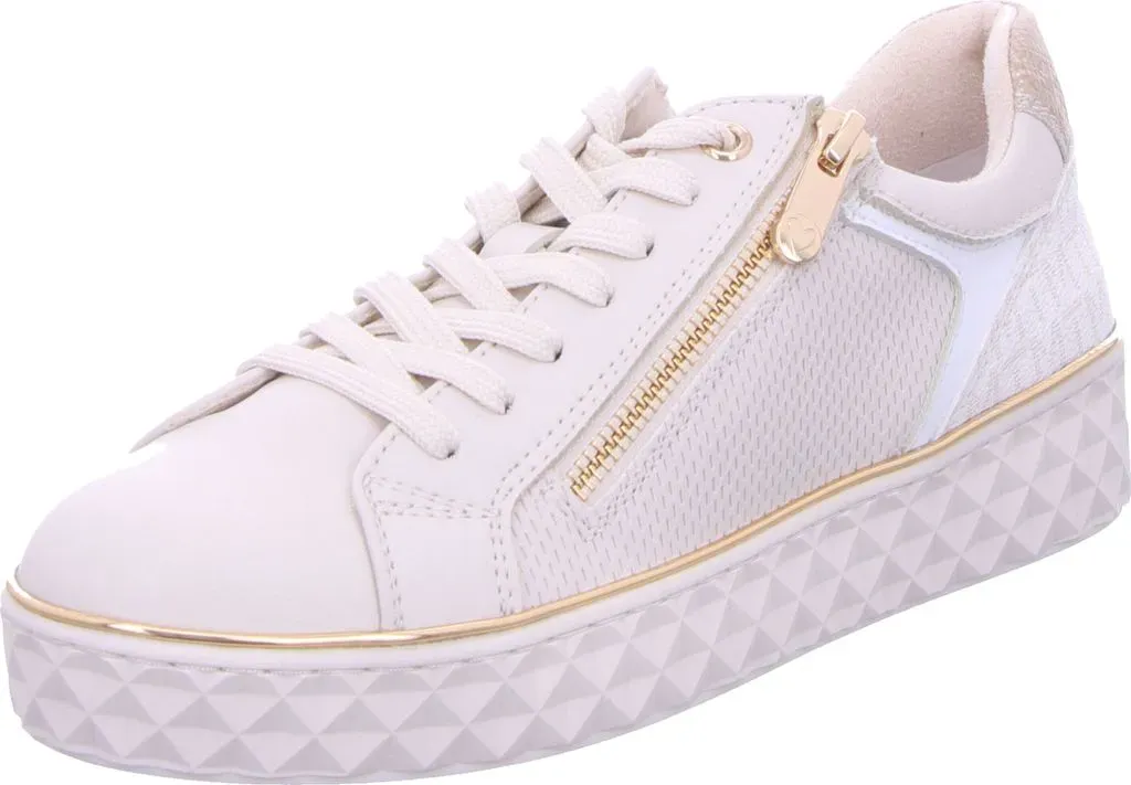 Kategorie: Sneaker - Marco Tozzi - GTIN:4064231389897 - Die Damen-Sneakers von Marco Tozzi in Creme sind ein elegantes für den Alltag. Die 3,5 cm hohe Plateausohle verleiht Ihren Schritten Leichtigkeit und dämpft Stöße. Die klassische Schnürung sorgt für eine optimale Anpassung an den Fuß. Durch das stylische Design passen die Schuhe perfekt sowohl zu lässigen als auch zu eleganteren Styles. Du möchtest einen Sneaker, der nicht nur stylish ist, sondern auch bequem? Dann ist der Damen Sneaker von Marco Tozzi die perfekte Wahl für dich. Dank der FEEL-Technologie bietet er optimalen Tragekomfort, während die herausnehmbare Sohle-Funktion für zusätzliche Bequemlichkeit sorgt. Der Materialmix aus Textil und Synthetik macht den Sneaker nicht nur vegan, sondern auch robust und langlebig. Die Kombination aus Reißverschluss und Schnürung ermöglicht eine individuelle Passform und die runde Schuhspitze sorgt für einen modernen Look. Hol dir den Marco Tozzi Damen Sneaker und erlebe Style und Komfort in einem! iese Komfort-Schnürer vereinen bequeme Passform mit einem klassischen Design. Ihre Schnürung ermöglicht eine individuelle Anpassung an den Fuß, während die gepolsterte Innensohle und die flexible Laufsohle für ein angenehmes Tragegefühl den ganzen Tag über sorgen. Sie sind eine ideale Wahl für den Alltag und bieten sowohl Stil als auch Bequemlichkeit. Modeltyp = Sneaker, Farbe = cream kombi, Absatztyp = Flach, Obermaterial = Synthetik, Obermaterial = Synthetik, Verschluss = ... Spartoo.de