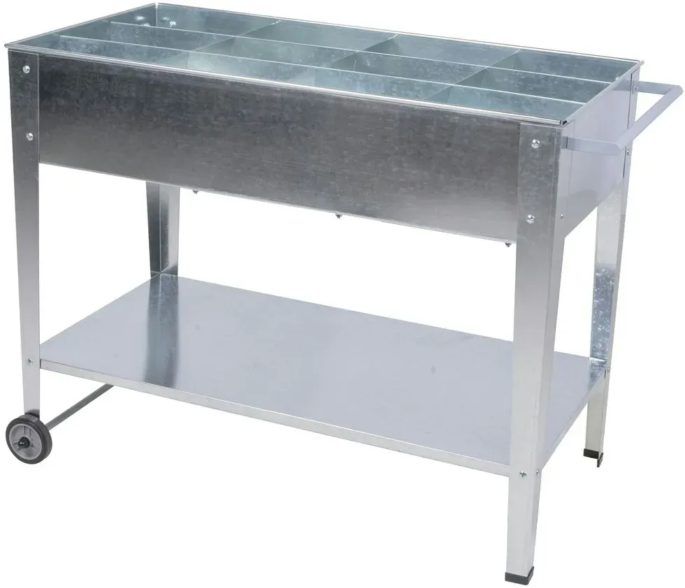 6 Händlerangebote bei billiger.de - Kategorie: Hochbeete - Garden Pleasure - Mobiles Hochbeet MARIEGOLD inkl. Ablageboden, Stahl verzinkter, mit 12 Einsätzen Trennstäbe aus Metall enthalten Auslieferung: demontiert Metall: verzinkter Stahl Metall-Farbe: silberfarbend Metall-Oberfläche: glatt Maße ca.: Bx52xH81xL110cm - GTIN:4041908136718 ![]() Garden Pleasure Hochbeet MARIEGOLD Metall silber rechteckig 52,0 x 81,0 cm