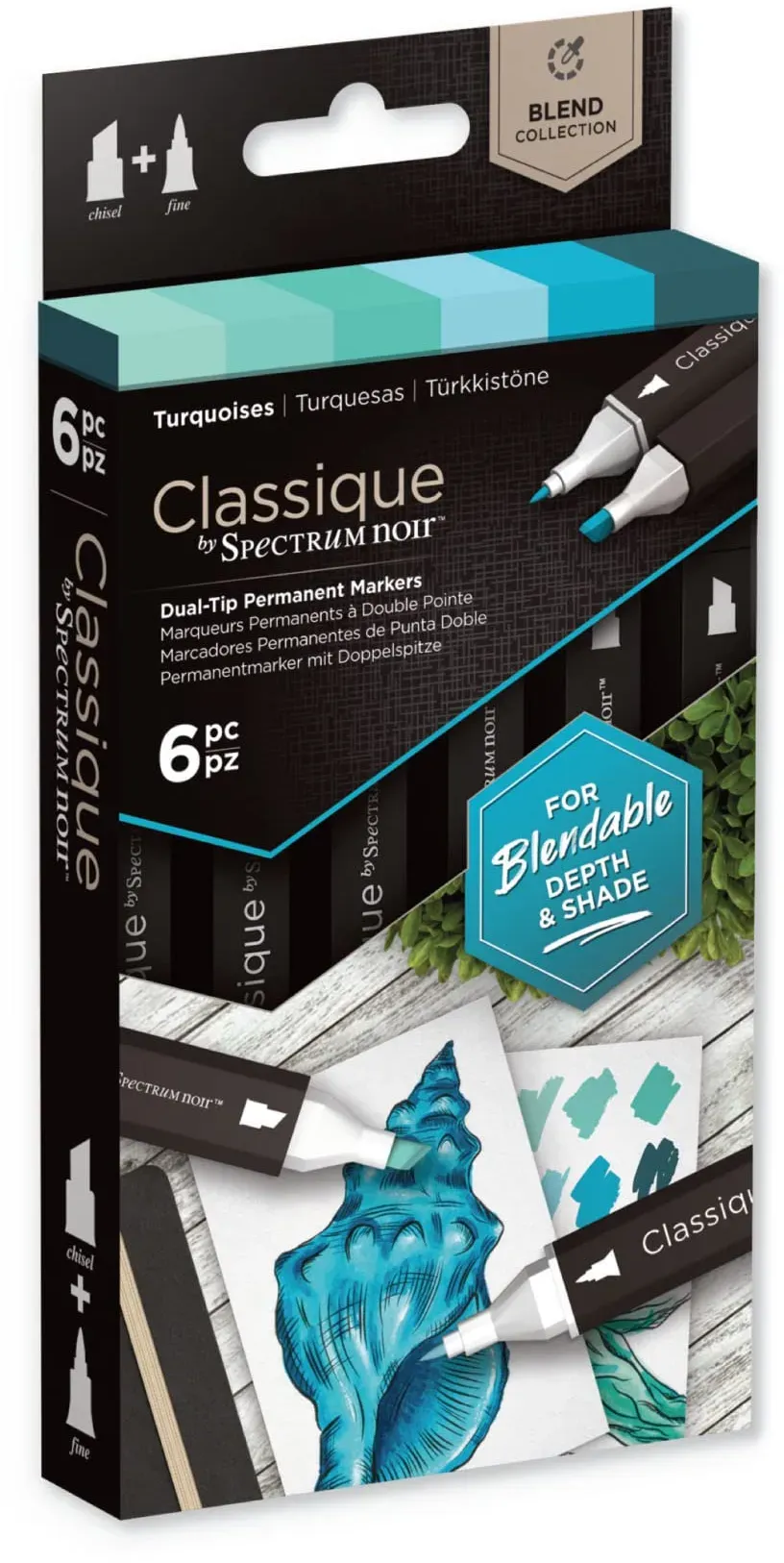 Kategorie: Sonstige Schreibgeräte - Crafter's Companion - GTIN:0195094113498 - Enthält Braungrau 2, Braungrau 6, Braungrau 7, Eisgrau 2, Eisgrau 5 und Eisgrau 7 Doppelte Hochleistungs-Feinkugel- und Breitmeißelspitzen Für präzise Details, schnelle Farbfüllungen und kräftige definierte Striche Mit glatter, mischbarer Deckkraft und hervorragender Farbklarheit Endlos vielseitig für alle Arten von Kunst, Design und Skizzieren - 13,63 Euro bei Amazon Marketplace Automotive - gefunden von billiger.de Ein kleineres Set mit 6 Alkoholmarkern in Aquatönen, perfekt für Einsteiger oder spezifische Farbprojekte. ![]() ![]() Crafter's Companion Spectrum Noir Classique Blend Marker mit Doppelspitze, mischbar, Alkoholbasis, 6 Stück, Aquatic Turquoises