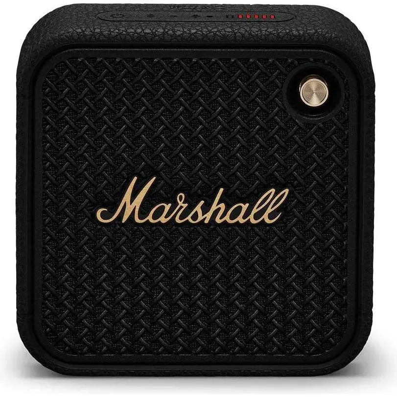 Marshall - EAN: 7340055399494 - . übertragung: Bluetooth - Farbe: Schwarz . maximale Akkulaufzeit: 17h . Ladefunktionen: Aufladen über USB . Abmessungen: 10.05 cm B x 10.05 cm H x 4.34 cm T, 0.36 kg Gewicht . Lieferumfang: USB-Kabel, Handbuch - bei computeruniverse.net - aus Yadore Produktdaten ![]() ![]() MARSHALL Willen II Bluetooth Lautsprecher, Black and Brass, Wasserfest