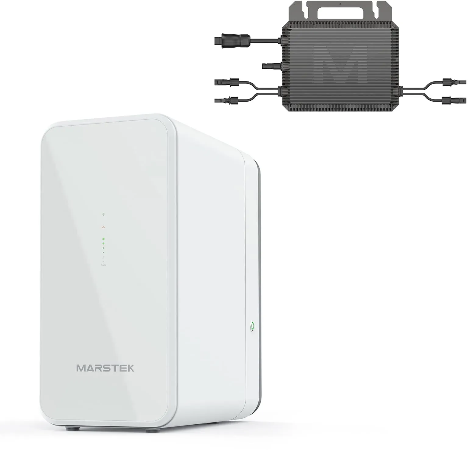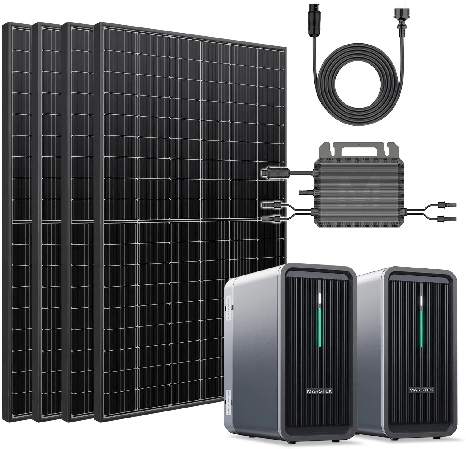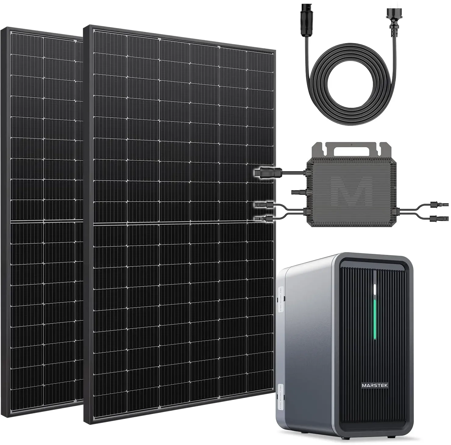 Gewöhnlich versandfertig in 4 bis 5 TagenMARSTEK B2500 Balkonkraftwerk mit Speicher 0% VAT+2 * 500W Solarmodule800W Mikrowechselrichter+5M Betteri-Steckern, 2240Wh LiFePO4 Akku 6000 Ladezyklen, Erweiterbar auf 8960Wh, Einfache Installation