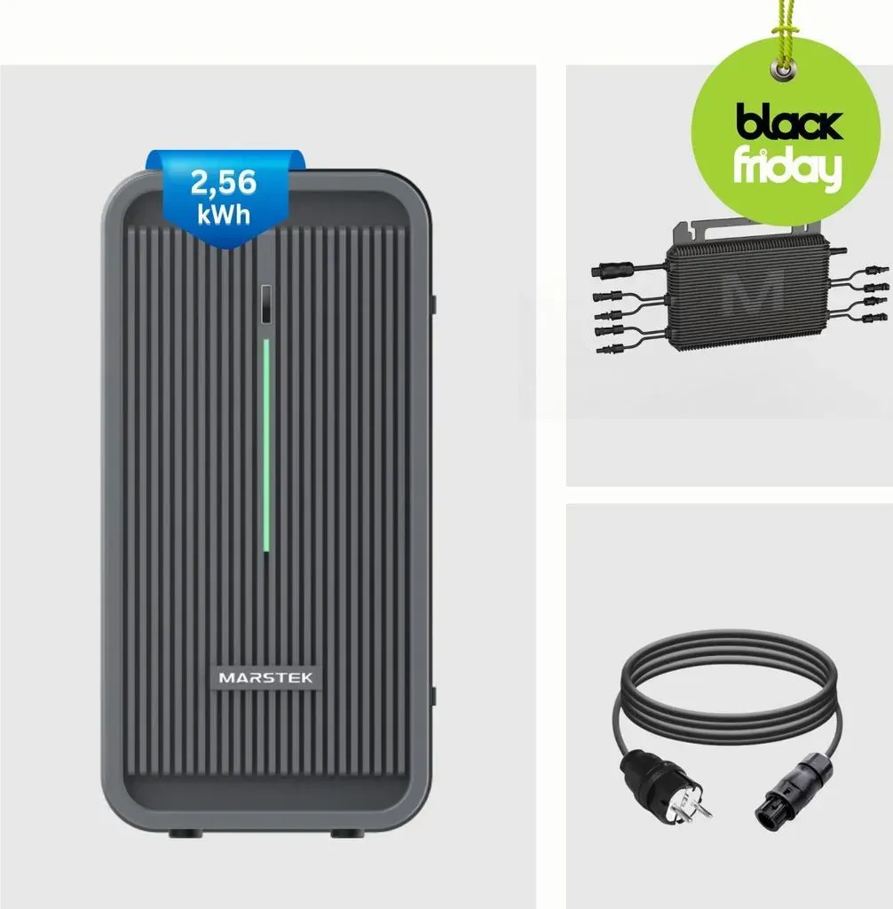 Verfügbarkeit: 3-6 Werktage - Kategorie: Solaranlagen - Paket.ag - GTIN:0731683425773 - Balkonkraftwerk 880 W Komplettset mit 800 W Wechselrichter & 2,24 kWh SpeicherIhre komplette Solarlösung für Balkon, Terrasse oder Garten! Unser leistungsstarkes 880 W Balkonkraftwerk mit integriertem Stromspeicher ist die perfekte Plug-&-Play-Lösung für sofortige Energieunabhängigkeit. Ideal für Mieter und Eigentümer. Vollständiger Lieferumfang:- 2 x PV-Module BiMAX 5 (440 W, N-Type TOPCon, bifacial, Dual-Glas)Moderne Premium-Module mit beidseitiger StromerzeugungTOPCon-Technologie für hohe Erträge auch bei SchwachlichtLanglebige Dual-Glas-Ausführung mit schwarzem Rahmen- 1 x Marstek Wechselrichter Saturn M (800 W)Hocheffiziente Stromwandlung mit hohem WirkungsgradIntegrierte Sicherheits- und überwachungsfunktionenOptimale Abstimmung auf die Solarmodule- 1 x Stromspeicher (2,24 kWh Kapazität)Moderne Speichertechnologie für flexible EnergienutzungNutzung Ihres Solarstroms auch abends und nachtsErhöht Ihren Eigenverbrauch deutlich- 1 x 5 Meter Schuko-SteckerSofort einsatzbereit für den sofortigen BetriebEinfacher Anschluss an jede Haushaltssteckdose Ihre Vorteile mit diesem Komplett-System:Sofortige Stromkostenersparnis Erhöhen Sie Ihren Eigenverbrauch und senken Sie Ihre monatlichen Kosten Energieunabhängigkeit 24/7 Nutzen Sie Ihren Solarstrom rund um die Uhr, auch nachts Einfachste Installation Vollständig vorkonfektioniert, in 15 Minuten ... Ein Balkonkraftwerk-Set mit Speicher, zwei 500W Solarmodulen und Mikrowechselrichter, das eine gute Einstiegslösung darstellt. ![]() ![]() MARSTEK B2500 Balkonkraftwerk mit Speicher 0% VAT+2 * 500W Solarmodule800W Mikrowechselrichter+5M Betteri-Steckern, 2240Wh LiFePO4 Akku 6000 Ladezyklen, Erweiterbar auf 8960Wh, Einfache Installation