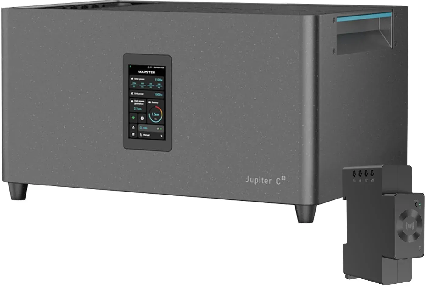 Kategorie: Stromspeicher - Marstek - GTIN:4260427616802 - Marstek Jupiter C Plus (2,56 kWh) Solar-Energie-Speicher SetAll-in-One erweiterbares Balkon-EnergiespeichersystemDer Jupiter C Plus ist die unkomplizierte All-in-One-Lösung für Ihre Stecker-Solaranlage. LiFePO4-Akkuzellen und integrierter 800-W-Mikro-Wechselrichter in einem kompakten Gerät. über das eingebaute Touch-Display können Sie den Speicher direkt steuern - wenn Sie wollen, auch ohne App und WLAN.Bis zu vier Solarmodule mit insgesamt 2400 W lassen sich direkt anschließen - ganz ohne Y-Kabel oder zusätzliche Verteiler. Jedes Modul arbeitet dank separaten MPP-Tracker unabhängig, sodass Verschattung oder unterschiedliche Ausrichtungen die Leistung der anderen Module nicht beeinträchtigen.Kompaktes Set mit dem Marstek CT002 Smart MeterDer Marstek CT002 ist mehr als nur ein Stromzähler - er ist das Herzstück Ihrer intelligenten Energienutzung. Entwickelt für die nahtlose Integration mit den Marstek-Systemen Venus, Jupiter und D2500, misst er Ihren Energieverbrauch in Echtzeit und schafft die Grundlage für Nulleinspeisung, Eigenverbrauchsoptimierung und dynamisches Lastmanagement.Intelligente Steuerung per App: Ladevorgänge konfigurieren und Stromflüsse analysieren mit der intuitiven Marstek App.Exakte Messdaten: Mit einer Messgenauigkeit von 1 % und einer Leistungserfassung bis 100 A pro Phase liefert der CT002 exakte Verbrauchsdaten.DIN-Schienenmontage: Die kompakte Bauform ermöglicht eine einfache Integration in ... Ein kompaktes und preisgünstiges Balkonkraftwerk mit 2.56kW Speicher und Anti-Einspeisung, perfekt für kleinere Haushalte. ![]() ![]() MARSTEK 2,56kW VENUS-C Balkonkraftwerk Speicher mit CT002 0% VAT, AC-gekoppeltes Energiespeichersystem All-in-One Solarspeicher, 2500W Ein-/Ausgangsleistung, Anti-Einspeisung Plug & Play