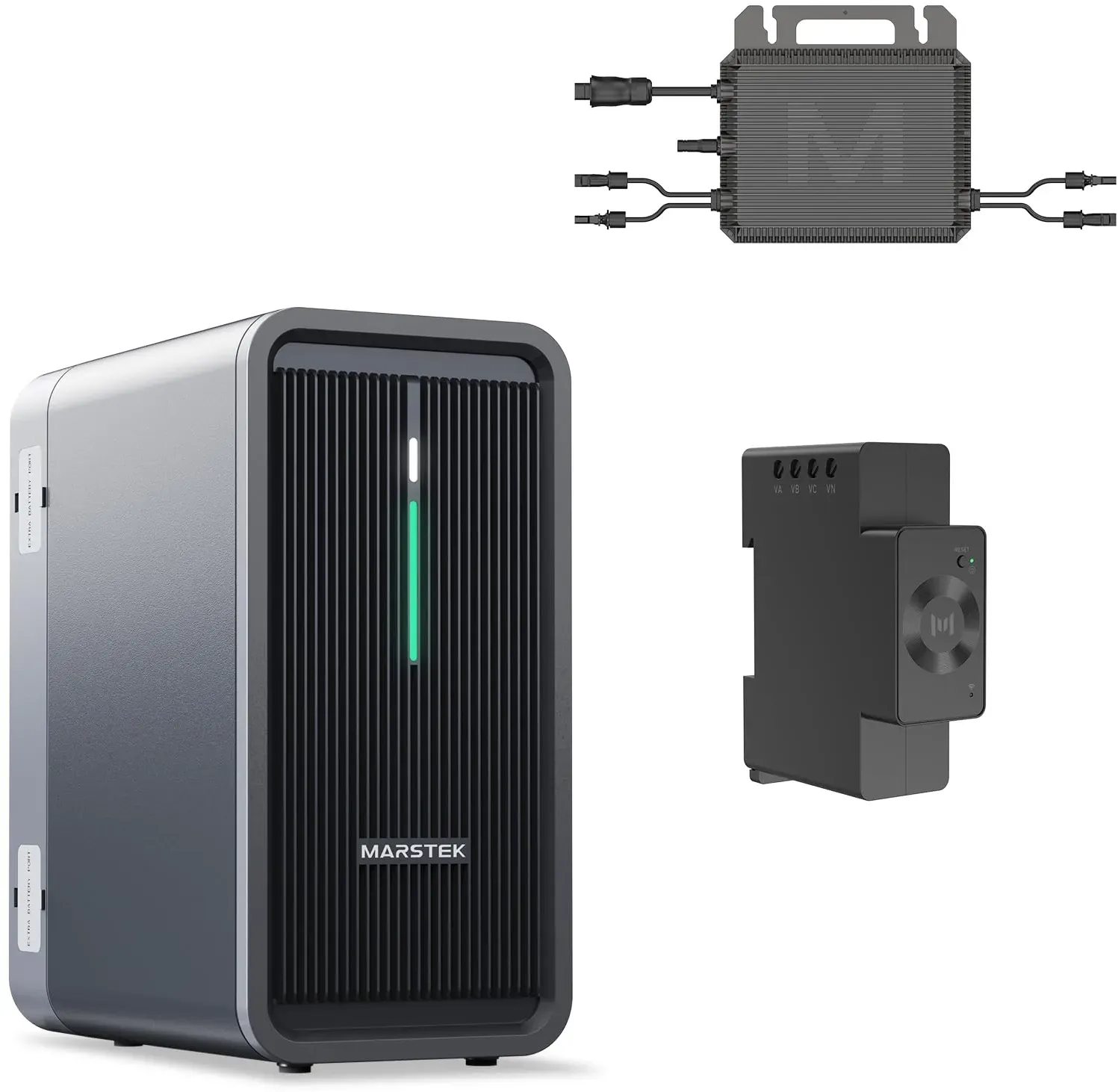 Kategorie: Stromspeicher - Marstek - 8.96Wh Erweiterbare Kapazität Marstek B2500 durch die Unterstützung von 4 Erweiterungsbatterien, die durch einfaches Stapeln verwendet werden können, bis zu 8.96Wh, können Sie reichlich Speicherplatz für Ihren Balkon Kraftwerk bieten. Sie können die Kapazität je nach Ihrem Solarstrombedarf anpassen. Sparen Sie Ihre Stromrechnung Ausgehend von einer Kapazität von 8,96 kWh pro Tag und etwa 2688 kWh pro Jahr, bei einem Preis von etwa 0,4 Euro pro kWh. Sie sparen jedes Jahr etwa 1074 Euro. 800W Mikrowechselrichter AC Ausgangsleistung max. 800 Watt. Für bis zu 2 Solarpanele mit je 320W bis 600W. Maximaler Wirkungsgrad: 96,5 %. Plug-and-Play Das kompakte und leichte Design der Rockcore-Mikrowechselrichter macht sie einfach zu installieren und zu verwenden. MARSTEK CT002 Smarter Zähler CT002 für Drei- oder Einphasenanlagen, Unterstützt WLAN, Bluetooth, Photovoltaikbereit, 1 Hersteller , Schnelle Anpassung, Spart Stromkosten. App-überwachung Gehen Sie in die Zukunft des Energiemanagements mit unserer intelligenten App. Dank Echtzeitüberwachung hält sie Sie über Ihren Energieverbrauch und Ihre Produktionsmuster auf dem Laufenden. Außerdem berechnet die App auf intelligente Weise Ihre Energieeinsparungen und gibt Ihnen ein klares Bild über Ihre Vorteile. Höhere Qualität Zuverlässige Energie für bis zu 6.000 Ladezyklen mit IP65 Staub-und Spritzwassergeschützt, Einfach zu verwenden auf Balkonen, Dächern, Garagen, Terrassen oder Gärten. Plug und ... Dieses aktualisierte Balkonkraftwerk bietet einen 2240Wh LiFePO4 Akku und ist auf bis zu 8960Wh erweiterbar. ![]() ![]() 2025 Updated Marstek Balkonkraftwerk mit Speicher B2500, 2240Wh LiFePO4 Akku (6000 Zyklen), 1600W PV Eingang, 800W Ausgang, Erweiterbar auf 8960Wh, 0% USt. privat (MARSTEK B2500D+MI800W+CT002)