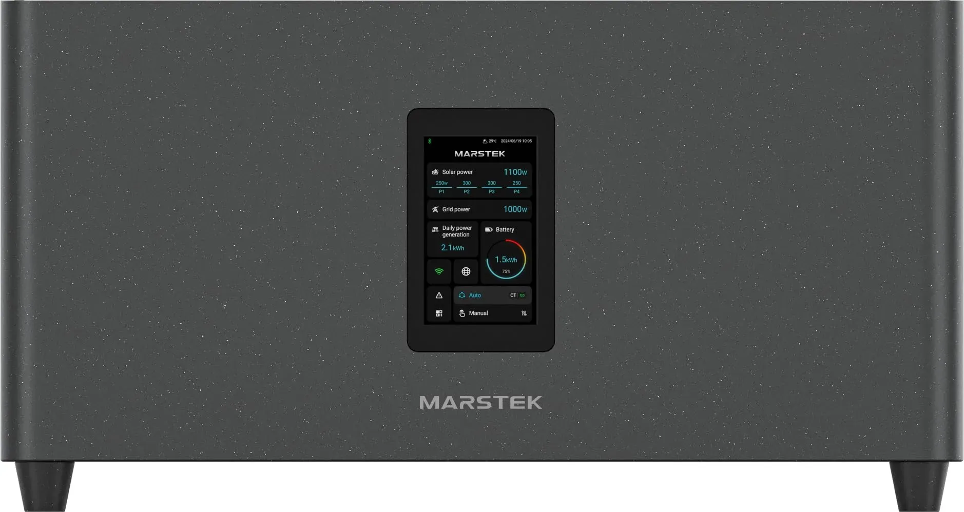 Kategorie: Stromspeicher - Marstek - GTIN:6951525704406 - Alles-in-einem-Design: Durch die nahtlose Integration der Batterie, des BMS und des Mikro-Wechselrichters in eine einzige Einheit vereinfacht dieses innovative Design die Systemarchitektur und reduziert erheblich den Energieverlust, wodurch hocheffiziente Netzanschlüsse leicht erreichbar werden. 2400W Ultra-Schnellladung über 4 MPPT: Es unterstützt bis zu 2400 W Solar-Eingang mit einem Design aus 4 unabhängigen MPPTs, was eine schnelle Ladung gewährleistet. Mit einer MPPT-Effizienz von bis zu 99,8 % bietet es herausragende Energieumwandlungsleistung. Stapelbares Design: Es beginnt mit einer Basisleistung von 2,56 kWh und kann mit bis zu drei Erweiterungsbatterien auf bis zu 10,24 kWh erweitert werden. Erfüllen Sie mühelos die Energieanforderungen Ihres Haushalts und genießen Sie größere Flexibilität und Möglichkeiten in der Energieversorgung. Zero Feed-In: Jupiter C Plus liest kontinuierlich Leistungsdaten vom Smart Meter und passt die Ausgangsleistung basierend auf Echtzeitdaten dynamisch an, um eine Null-Einspeisung ins Netz zu gewährleisten und die Energieeffizienz zu steigern. Unterstützte Smart Meter sind Marstek CT002/CT003, Shelly Smart Meter, HomeWizard P1 Meter usw. Mühelose und intelligente Bedienung: Jupiter C Plus kann über ein hochauflösendes Touchscreen eingestellt oder über eine App überwacht und gesteuert werden. Die Benutzeroberfläche ist klar und die Interaktion ist intuitiver und bequemer. - ... Ein umfangreiches Balkonkraftwerk mit 5,12 kWh Speicher, CT002 Smart Meter und vier 500W Solarpanels für maximale Energieautarkie. ![]() ![]() MARSTEK JUPITER C Plus mit CT002 (0% VAT), 5.12kWh Balkonkraftwerk mit Speicher, 4 MPPT 2400W Solareingang, 4 500W Solarpanels, bis zu 10.24kWh Kapazität, IP65, 6000 Ladezyklen, Plug&Play