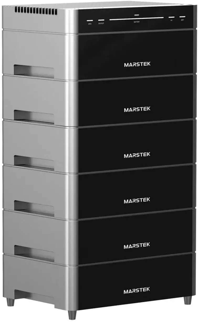Gewöhnlich versandfertig in 11 bis 12 TagenMARSTEK Venus A + 5*Erweiterungsakkus ( 12.72 kWh), Speicher erweiterbar auf bis zu 12,72 kWh, 4 MPPT-Bis zu 2400 W Solareingänge, Plug & Play 1200W bidirektionaler Wechselrichter AC-Kopplung