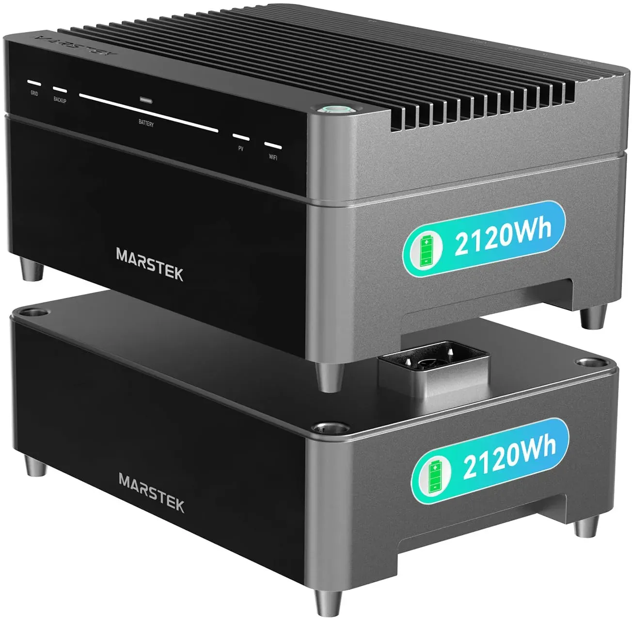 Gewöhnlich versandfertig in 11 bis 12 TagenMARSTEK Venus A + 1*Erweiterungsakku ( 4.24 kWh), Speicher erweiterbar auf bis zu 12,72 kWh, 4 MPPT-Bis zu 2400 W Solareingänge, Plug & Play 1200W bidirektionaler Wechselrichter AC-Kopplung