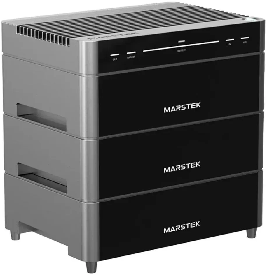 Gewöhnlich versandfertig in 11 bis 12 TagenMARSTEK Venus A + 2*Erweiterungsakkus ( 6.36 kWh), Speicher erweiterbar auf bis zu 12,72 kWh, 4 MPPT-Bis zu 2400 W Solareingänge, Plug & Play 1200W bidirektionaler Wechselrichter AC-Kopplung