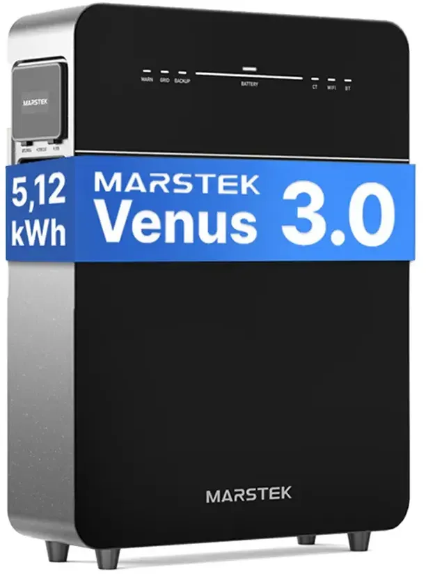 Kategorie: Stromspeicher - Marstek - All-in-One Stromspeicher + SmartMeter für effizientes Energiemanagement! Das Komplettpaket besteht aus dem modular erweiterbaren JUPITER-C Plus All-in-One Speicher mit integriertem Wechselrichter, MPPT-Technologie und intuitivem Touchscreen sowie dem Marstek SmartMeter CT002 zur intelligenten Verbrauchssteuerung. Die wetterfeste, langlebige Lösung eignet sich ideal für Hausbesitzer, Gartenprojekte oder Balkonkraftwerke, die ihre Energie effizient speichern, nutzen und steuern möchten, ganz ohne komplizierte Installation. - 1499,00 Euro bei dura-solar.de - gefunden von billiger.de Dieser PV-Speicher bietet eine hohe Kapazität von 5,12 kWh und ist eine zuverlässige AC-gekoppelte Lösung. ![]() ![]() MRST VENUS-E 3.0 - PV Speicher, Marstek Venus-E 3.0, AC, 5120 Wh