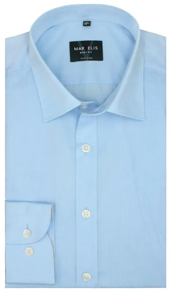 Auf Lager Versand durch AmazonMarvelis Herren Oberhemd Langarm Body-Fit,Einfarbig, New York Kent, Hellblau mit Ausputz, Gr. 43