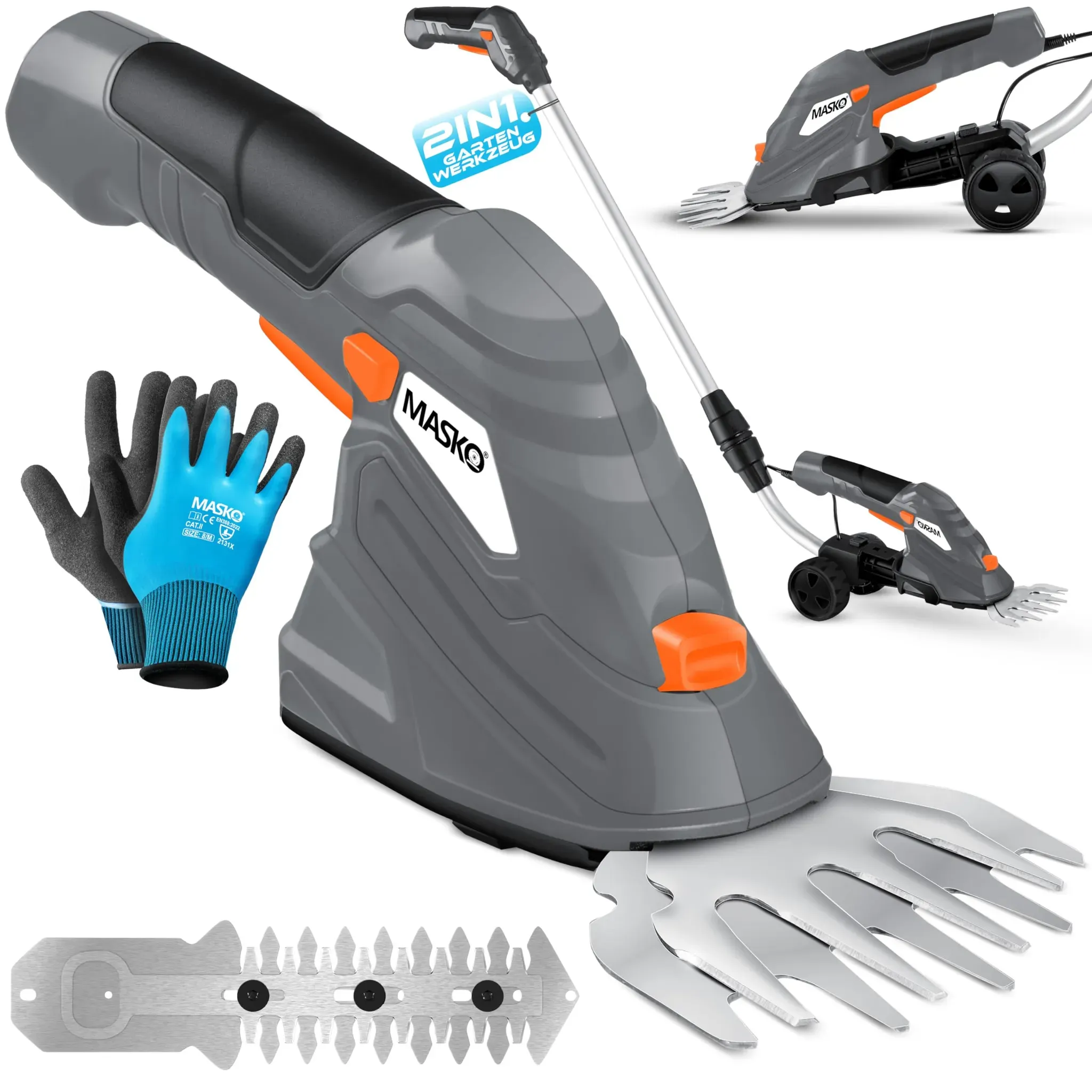 Kategorie: Strauchscheren - Masko - GTIN:4255598354257 - MASKO Gras- und Heckenschere, inkl. höhenverstellbarer Teleskopstange mit Rädern, schnelles wechseln zwischen Strauchmesser und Grasschneideblatt, ergonomischer Griff, kabellose Laufzeit von bis zu 60 Minuten MASKO - Rasenpflege macht man so! Rings um - 34,96 Euro bei Marktkauf.de - gefunden von billiger.de ![]() ![]() MASKO Grasschere Strauchschere Set mit Akku 7,2V 2000mA/h + Ladegerät + Handschuhe elektrische Garten Heckenschere Rasenschere Inkl. Grasmesser + Strauchmesser + stiel Teleskopstange 90-130 cm Rädern