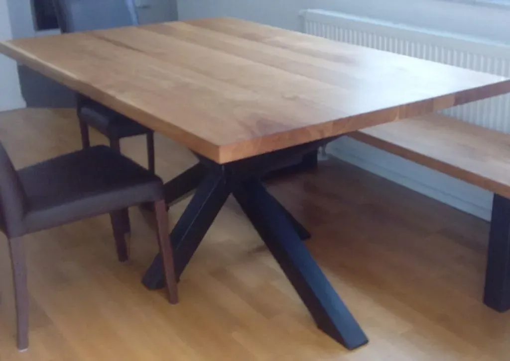 EAN: 3831098807434 - Wir präsentieren einen großen, stilvollen Esstisch, der die natürliche Wärme der Eichenfarbe mit der industriellen Robustheit von Metall kombiniert und so ein Herzstück schafft, das sowohl funktional als auch optisch beeindruckend ist.Die Tischplatte ist aus hochwertigem, massivem Eichenholz gefertigt und zeigt die natürliche Maserung des Holzes, was dem Tisch eine organische Note verleiht.Die Tischplatte in natürlicher Eichenfarbe bietet zeitlosen Reiz und fügt sich nahtlos in eine Vielzahl von Inneneinrichtungen ein, egal ob Ihr Zuhause eher modern, rustikal oder industriell gestaltet ist. Seine großzügigen Abmessungen von 180 x 90 cm bieten reichlich Platz für Familienessen, gesellige Zusammenkünfte oder sogar zum Arbeiten von zu Hause aus.Die Tischplatte besteht aus zwei unterschiedlichen Eichenschichten mit einer Dicke von jeweils 2 cm, während das herkömmliche Design mit geraden Kanten dem organischen Gesamtbild eine raffinierte moderne Note verleiht.Jedes Bein misst 8 x 4 cm und ist mit einer eleganten schwarzen Pulverbeschichtung versehen, die es vor Umwelteinflüssen wie Rost, Feuchtigkeit und alltäglicher Abnutzung schützt.Diese Schutzbeschichtung stellt sicher, dass der Tisch den Test der Zeit besteht und seine Qualität und sein Aussehen über Jahre hinweg behält. Die robusten Metallbeine tragen nicht nur zum industriellen Charme des Tisches bei, sondern bieten auch eine solide Grundlage, wodurch dieses Stück ideal für den täglichen Gebrauch ... Ein großer Esstisch mit massiver Eichenholz-Tischplatte und Spinnenbeinen, der eine moderne und stabile Lösung für größere Räume ist. ![]() ![]() Other brand Tisch mit gerader Kante und Spinnenbeinen 200x80cm, Tischplatte aus massiver Eiche, Tischplatte aus massiver Eiche, Esstisch, Küchentisch - Schwarz