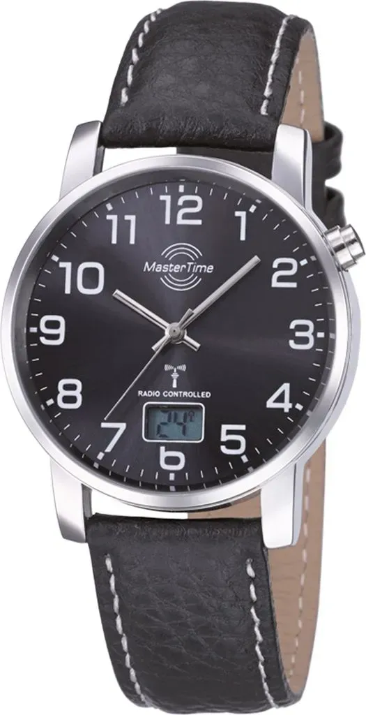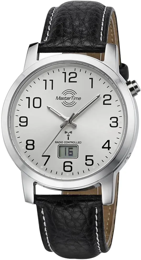 Kategorie: Herrenuhren - Master Time - GTIN:4260091353867 - Gut ablesbare Funkuhr mit großen arabischen Ziffern, schwarzes Lederband, wasserdicht bis 3 Bar, Durchmesser: 42mm Funkuhr mit digitaler Datumsanzeige, Ewiger Kalender, funkgesteuerte automatische Zeitumstellung von Sommer- und Winterzeit, Leuchtzeiger Funkuhr mit Langzeitbatterie, 3x längere Lebensdauer als bei einer herkömmlichen Batterie! Empfang des Signals DCF 77 (Mainflingen, DE) Durch die arabischen Ziffern ist das Zifferblatt sehr gut ablesbar Das Lederband mit weißen Ziernähten schmiegt sich dem Handgelenk gut and, Handgelenkumfang ca.: 17,5 bis 21,5 cm - 44,95 Euro bei Amazon Marketplace Watches - gefunden von billiger.de Diese Uhr kombiniert Funktionalität mit einem bequemen Lederarmband zu einem fairen Preis. ![]() ![]() Master Time Funk Quarz Herren Uhr Analog-Digital mit Leder Armband MTGA-10876-32L
