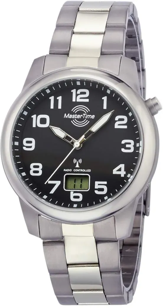 Kategorie: Herrenuhren - Master Time - GTIN:4260503032939 - Analoge Funk Herrenuhr mit digitalem Datum und gut ablesbarem Zifferblatt Gehäuse und Armband sind aus robustem, leichtem Titan, wasserdicht bis 5 Bar Ewiger Kalender, Funkgesteuerte automatische Zeitumstellung von Sommer- und Winterzeit, Stunde/Minute/Sekunde und Leuchtzeigern 3x längere Lebensdauer als bei einer herkömmlichen Batterie! Immer die perfekte Zeit dank Funkempfang, Funkuhr mit Langzeitbatterie - 99,93 Euro bei Amazon Marketplace Watches - gefunden von billiger.de Das teuerste Modell in dieser Auswahl, das höchste Qualität und ein edles Titanarmband bietet. ![]() ![]() Master Time Funk Quarz Herren Uhr Analog-Digital mit Titan Armband MTGT-10353-42M
