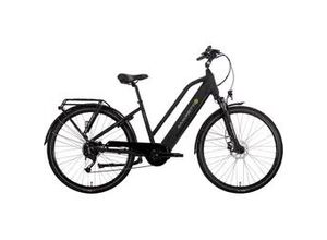 Radsport Mountainbiking Lifestyle Sport Freizeit - - Schwing dich auf das schöne Tretwerk Aurora E-Bike und lass dich von einem Hauch Leichtigkeit durch deine Abenteuer begleiten! Das E Damenfahrrad überzeugt mit seinem Aluminium Tiefeinsteiger-Rahmen, der ein müheloses Auf- und Absteigen ermöglicht und gleichzeitig einen angenehmen Fahrkomfort auf verschiedenen Strecken bietet. Seine Konstruktion ist speziell darauf ausgerichtet, eine bequeme Fahrposition zu gewährleisten, was das Elektrofahrrad ideal für Fahrten sowohl in der Stadt als auch auf dem Land macht. Der Elektroantrieb des Aurora, ausgestattet mit einem leistungsstarken Ananda M129F Vorderradmotor, verleiht deinen Fahrten eine zusätzliche Portion Schwung. Mit einer Leistung von 250 W und einem Drehmoment von 40 Nm unterstützt der Motor dich effizient beim Treten, insbesondere beim Starten und Bergauffahren. So kannst du deine Touren mit Leichtigkeit genießen, egal ob du durch die Stadt fährst oder dich auf längere Ausflüge begibst - dank 468 Wh Akku über 70 bis 100 km weit. Da neben dem Gesamtgewicht auch das gewählte Unterstützungslevel, die Geländebedingungen und Wetterverhältnisse wie beispielsweise Gegenwind Einfluss nehmen, ist eine exakte Angabe der Reichweite von E-Bike Akkus kaum möglich. Unsere Angaben sollen daher als Richtwert verstanden werden. Das Pedelec ist mit einer hochwertigen Shimano Nexus Getriebenabe ausgestattet, die für eine reibungslose Schaltleistung sorgt. Die Nabenschaltung ermöglicht ... Ein vielseitiges E-Bike für Damen und Herren, das Komfort und Funktionalität zu einem attraktiven Preis vereint. ![]() 366994 / DE- Billiger- baur.de E-Bike ADORE 'E-Active' Gr. 50, schwarz (schwarz, schwarz), Elektrofahrräder, 50cm, 28 Zoll (71,12cm), Pedelec, Elektrofahrrad für Damen u. Herren