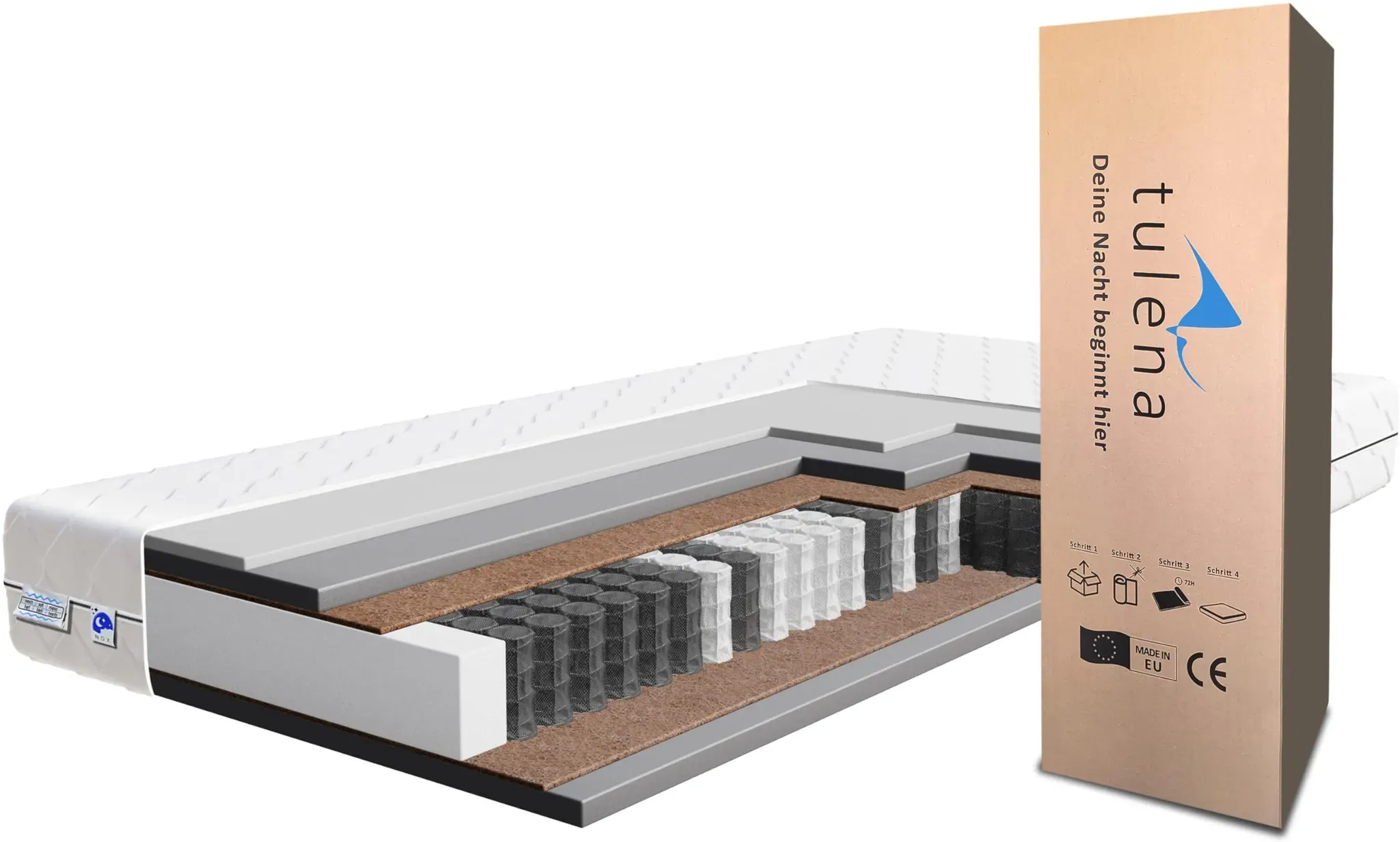 Kategorie: Taschenfederkern-Matratzen - TULENA - GTIN:5901928750631 - Doppelseitiger Komfort: TULENA NOX bietet zwei Liegehärten für individuellen Komfort weicher oder fester liegen, alles auf einer Federkernmatratze! Atmungsaktiver Microfaser Bezug: Abnehmbar und bei 40 waschbar. Bietet den Allergikern Schutz vor Hausstaub und Milben. Der dreiseitige Reißverschluss erleichtert das Aufziehen. Nicht für den Trockner geeignet. Erhältlich in drei Ausführungen: Basic: Bietet grundlegenden Komfort. Comfort: Mit zusätzlicher Memory-Schaum-Schicht für erhöhten Komfort. Comfort+: Mit Memory-Schaum- und Latex-Schicht für maximalen Komfort. Umweltgerechte Verpackung: Volumenreduzierte Rollmatratze soll nach dem Auspacken 72 Stunden warten, um volles Volumen zu erreichen. Nicht länger als vier Wochen komprimiert lassen. 30 NäCHTE TESTSCHLAF überzeugen Sie sich selbst: Testen Sie unsere Matratze 30 Nächte risikofrei. Sollte sie Ihnen nicht zusagen, holen wir sie kostenfrei ab und erstatten den gesamten Kaufbetrag (nur in DE & AT) - 201,30 Euro bei Amazon Marketplace Home - gefunden von billiger.de Diese Taschenfederkernmatratze von MALIE ist eine beliebte Wahl für 232,92 Euro und bietet 7 Zonen für guten Schlafkomfort. ![]() Taschenfederkernmatratze MALIE 'Matratze Königin 7 Zonen Tonnentaschenfederkernmatratze' Gr. 2, weiß, B:100cm H:24cm L:200cm, Bezug: 100% Polyester, Matratzen, 90x200cm& weitere Größen, Matratze H2, H3, H4, H5