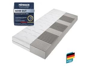 Matratzen Wohnen Schlafzimmer Betten Matratzen - - Die Komfortschaum-Matratze Grand Master von BeCo bietet erholsamen und luxuriösen Schlaf dank einer tollen Matratzenhöhe von 26 cm. Durch diese Komforthöhe wirken die 7 ergonomischen Liegezonen maximal. Egal ob Seiten-, Rücken- oder Bauchschläfer, sie stützen den Körper in jeder Position punktgenau und ermöglichen damit ein angenehmes Liegegefühl. Das tiefenwirksame Schulter-Entlastungs-System mindert Verspannungen im Schulter-Nacken-Bereich. Dank eines festeren Schaums im Rücken- und Lordosebereich wird die Wirbelsäule optimal gestützt. Zusätzlich wird durch die besondere Komforthöhe der tägliche Ein- und Ausstieg erleichtert. Die Matratze ist in 3 Härtegraden erhältlich - H2, H3 und H4. Im Härtegrad 4 ist die Matratze sogar bis 180 kg belastbar. Auch der Doppeltuch-Bezug bringt einige Vorteile mit sich: Er ist teilbar und lässt sich im Bedarfsfall bei 60°C in der Waschmaschine reinigen. Er ist besonders feuchtigkeitsregulierend und atmungsaktiv, was zu einem optimalen Schlafklima beiträgt. Alle verwendeten Materialien sind nach OEKO-Tex Standard 100, Produktklasse 1 für Babyartikel geeignet, zertifiziert, Top-Feature: Top-Features: Mit Schulter-, Becken- und Lordose-Komfortzone - Bei der Schulterkomfortzone handelt es sich um eine spezielle Zone zur Lagerung der Schulter. Die Schulterkomfortzone ist besonders nachgiebig und erlaubt ein tieferes Einsinken der Schulterpartie in seitlicher Schlaflage. Die verstärkte ... Eine weitere MARPUR Taschenfederkernmatratze mit Kokos-Schicht und 7 Zonen, die für ihre Unterstützung bekannt ist. ![]() ![]()