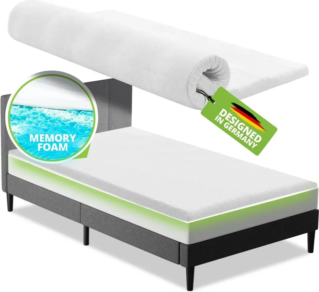 Kategorie: Matratzenschoner - Arensberger - GTIN:4250263743879 - GEMüTLICHER SCHLAF: Dank des qualitativ hochwertigen Gel-Foam bietet der Topper eine optimierte Punkt-Elastizität und Druckentlastung in allen Bereichen des Rückens. Sowohl Rücken, Bauch oder Seitenschläfer können die Vorteile des 8cm hohem Gelschaums vollumfänglich nutzen.VERBESSERT JEDE MATRATZE: Topper wirken wie ein Wundermittel bei ungemütlichen oder durchgelegenen Matratzen. Der integrierte Gel Foam harmoniert dabei hervorragend mit allen Arten von Matratzen. Egal ob Sie eine Federkern, Taschenfederkern, Bonellfederkern, Kaltschaummatratze oder Memoryschaummatratze besitzen.WASCHBAR & HYGENISCH: Der Bezug ist aus feinem Knit Stretch Stoff gefertigt und besitzt ein sensationelles hohes Flächengewicht von 230g/m2, welches so nur im Premium Segment verwendet wird. Der Bezug ist abnehmbar und waschbar.GELSCHAUM TOPPER: Gel Topper bieten im Vergleich zu herkömmlichen Topper neben einer verbesserten Anpassung auch eine leicht kühlende Wirkung. Darüber hinaus wird Gel nur bei hochwertigen Matratzen und Topper verwendet. über die Gummibänder bleibt der Topper immer in Position und verrutscht nicht.ARENSBERGER - QUALITäT SEIT 2004: Unser Anspruch ist gesunder Schlaf. Seit 2004 entwickeln wir neue Matratzen und Topper. So verbinden wir hohen Qualitätsanspruch, Fachkenntnis und Expertise. Daraus entstehen optimale Produkte zu besten Preisen. - 54,90 Euro bei Kaufland.de - gefunden von billiger.de Der Juskys Topper aus Memoryschaum ist eine beliebte Wahl für orthopädischen Komfort und Atmungsaktivität. ![]() ![]() Juskys Topper 90x200 cm aus Memoryschaum, 7-Zonen orthopädisch & atmungsaktiv, 7cm Höhe, H2 - H3, Bezug waschbar Matratzentopper Matratzenauflage