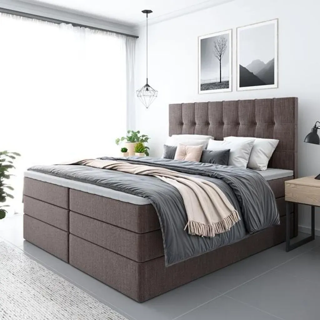 Kategorie: Betten - euro-meble - GTIN:5905186872074 - MERA PLUSDas Boxspring MERA PLUS ist ein praktisches Bett aus hochwertigen Materialien mit Bettkasten.Das kontinentale Bett kombiniert originelle Formen, einen einzigartigen Verarbeitungsstil und innovative Technologien, um dem Kunden ein besonderes Gefühl zu geben.Unsere Betten werden sowohl von Privatkundenals auch von der Hotelleriegeschätzt.Mit all diesen Vorteilen können Sie Ihre eigene Insel der Ruhe zu Hause haben.Ein charakteristisches Merkmal dieses Bettes ist, dass die Liegefläche im Vergleich zu anderen Betttypen relativ hoch über dem Boden liegt, ca. 62-65 cm (je nach Höhe der Beine und Dicke der Matratze).Highlight ! Das Bett ist mit zwei Matratzentypen ausgestattet: Bonell und Pocket MatrazeDas Bett besteht aus:Zwei Bettkasten für die Bettwäsche: Bett im Standard mit zwei Bettkästen für die Bettwäsche auf beiden Seiten des Bettes.Die Hauptmatratze: UNTERE Bonell-Matratze, Hochelastischer Schaumstoff T30 (Mittelhart), OBERE Poket-Matraze (Taschenmatraze)Ganz Oben kann sich befinden der Matratzen-Topper: Hochelastischer VISCO-Schaumstoff mit Bezug.Hebefunktion Federmechanismus hebt die zweite Schicht über dem Bettkasten an .Spezifikation:Maße:Breite: 120 cmHöhe: 126 cmLenge: 211 cmSchlaffläche: 120x200 cmFarbe:Braun - Aura 04Wichtige informationen:Die Möbeln werden von einem spezialisierten Transportunternehmen geliefert.Die Lieferung der Möbeln erfolgt in Deutschland. Leider liefern wir keine Möbeln auf die ... Dieses Polsterbett mit Bonell Matratze H3 und Holzrahmen ist eine robuste und komfortable Option. ![]() ![]()