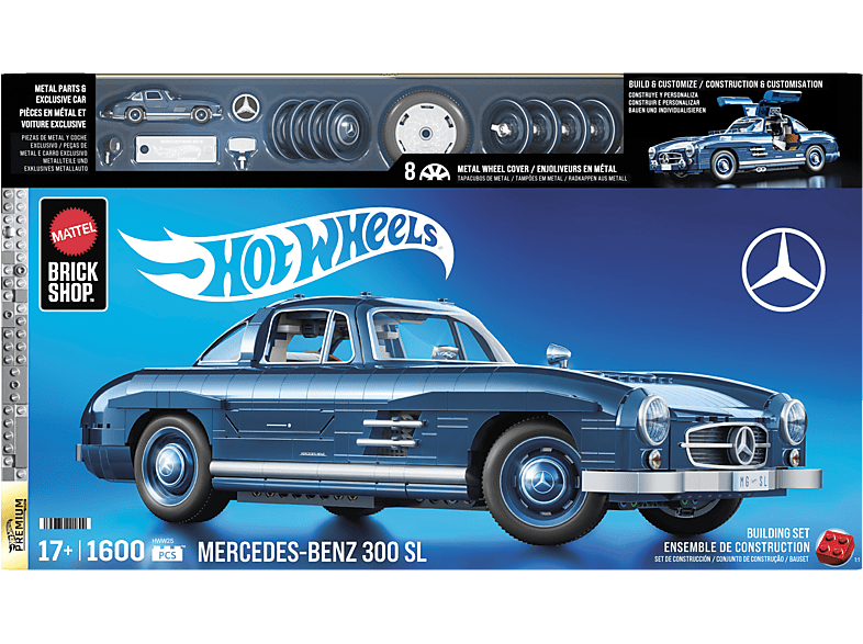 Auf Lager Versand durch Amazon?Mattel Brick Shop Hot Wheels Premium Serie Bauset, Mercedes-Benz 300 SL mit 1600 Teilen, realistischen Details und Metallteilen, für Sammler, HWW25, [Mehrfarbig]