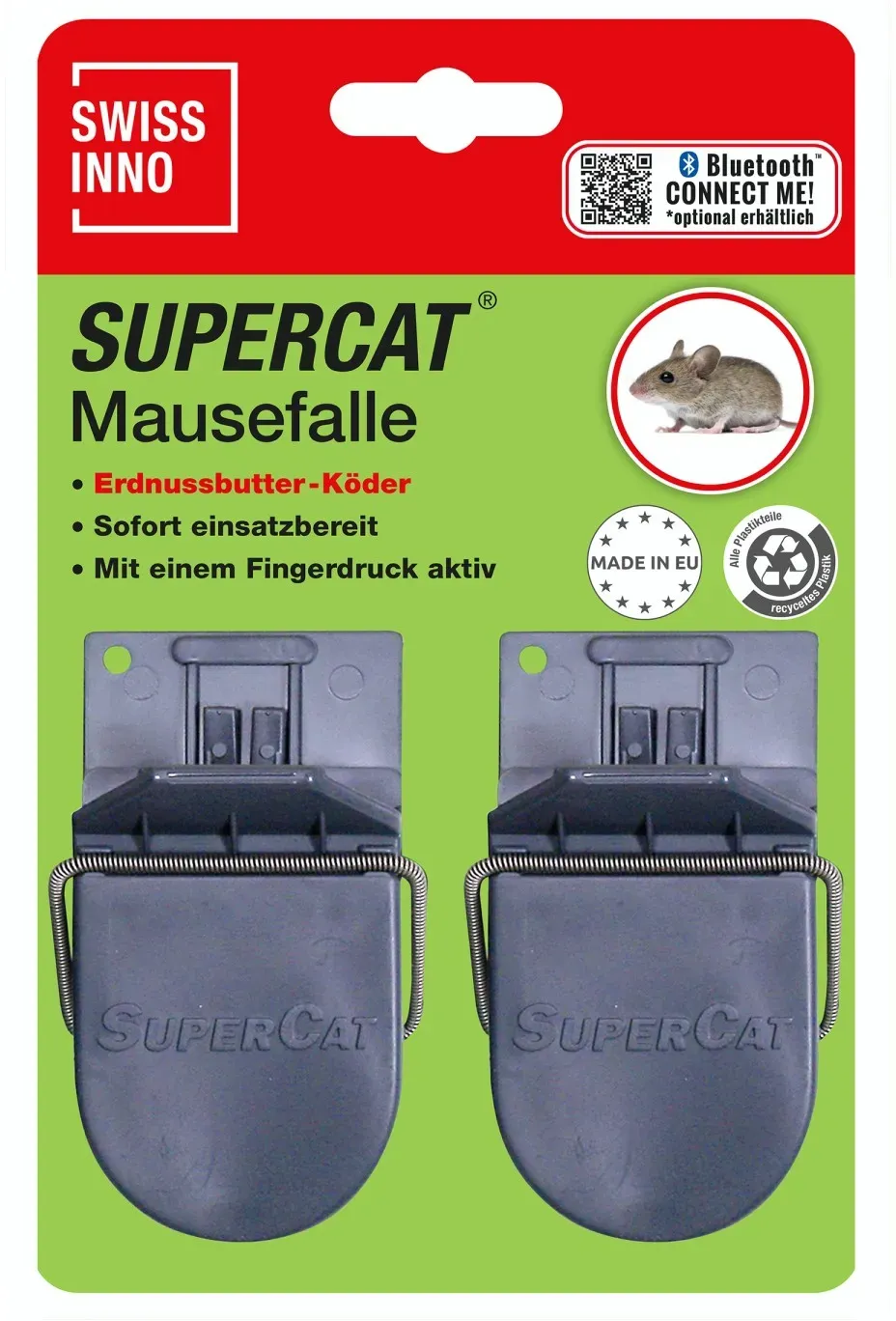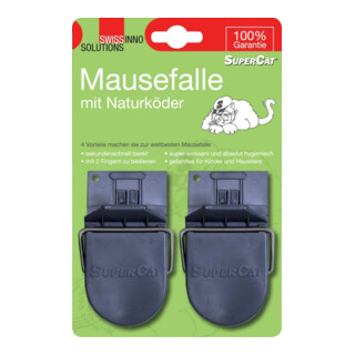 Auf Lager Versand durch AmazonSWISSINNO Mausefalle SuperCat - Effizient + Wiederverwendbar mit Erdnussbutter-Köder - Sofortiges Fangen + Töten - Verwendung im Innen- und Außenbereich - 2 Fallen