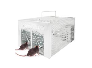 Kategorie: Pflegemittel & Schädlingsbekämpfung - ExBuster - GTIN:4022107960342 - Fängt Mäuse, ohne zu zu töten • Cleverer Schließ-Mechanismus der Falle • Unbedenklich da ohne Gift und Chemie • Sicher für Haustiere und Kinder • Immer wieder verwendbar Tierfreundlich: lockt Mäuse an und fängt sie, ohne zu töten • Völlig unbedenklich: ohne Gift und ohne Chemie • Immer wieder verwendbar Cleverer Mechanismus: Falle schließt sich durch das Körpergewicht des Nagers • Sicher für Haustiere und Kinder • Material: ABS (Kunststoff) Abnehmbarer Deckel: einfaches Auslegen des Köders und berührungsloses Freilassen der Maus • Per Bodenhering leicht zu befestigen (bitte dazu bestellen) • Maße: 315 x 75 x 80 mm, Gewicht: 200 g 3 Mausefallen inklusive deutscher Anleitung. Falle ohne Chemie - Fangen Sie lästige Nager jetzt ganz einfach lebend: ohne Chemie und Gift - 32,99 Euro bei Amazon Marketplace Lawn & Garden - gefunden von billiger.de Diese RatzFatz Lebendfalle aus Stahl und Eisen ist eine robuste Option für größere Nager wie Wühlmäuse und Ratten. ![]() RatzFatz Lebendfalle Mausefalle, mit Doppeltür, aus Stahl und Eisen,30×22×15cm, für Wühlmäuse, Hamster, Meerschweinchen, Mäuse, Ratten