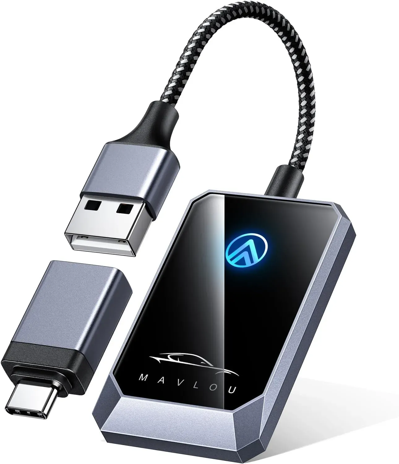 Auf Lager Versand durch AmazonMavlou CarPlay Wireless Adapter für iPhone, Stabiler Schneller Mini CarPlay Stick, Superschnelle Upgrade von Wired auf Wireless CarPlay, Plug & Play, für iOS 10+ & Autos mit Wired CarPlay (Schwarz)