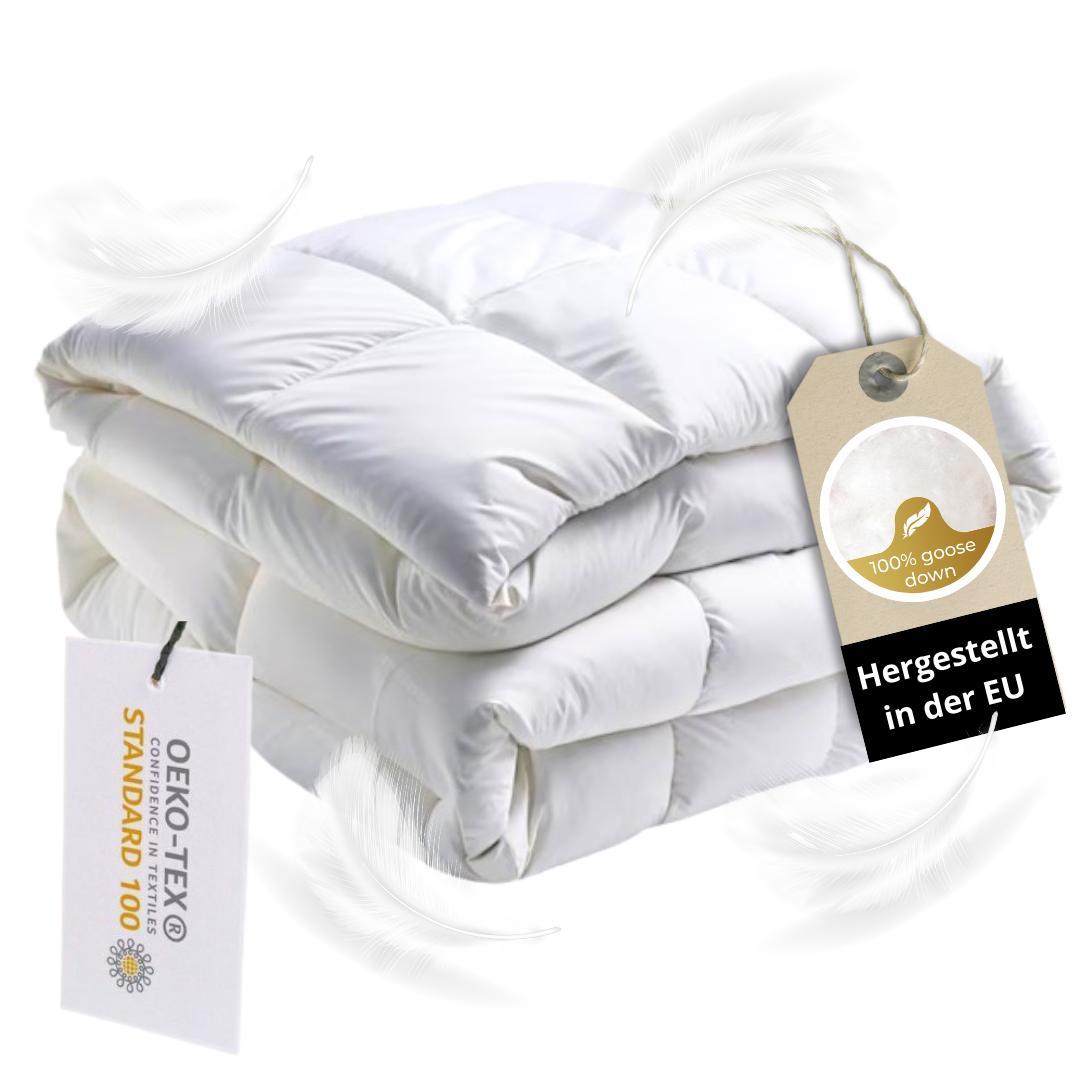 Zustand: Neu - Bettdecken - maxiga MAXIGA - KOL-BIELZ-WPB-155X220-2500G/80 - EAN: 5906896542202 - 80 % Premium-Gänsedaunen & 20 % kleine Daunenfederchen (Klasse I) - perfekte Kombination für maximale Wärmeisolierung, natürliche Bauschkraft und außergewöhnliche Leichtigkeit - ideal für kalte Wintertage. 100 % natürliche, sehr weiche Baumwolle. Ethisch & nachhaltig - Herkunft rt: keine Lebendrupf, keine Kompromisse bei Tierschutz und Qualität. Daunen und Daunenfederchen stammen aus verantwortungsbewussten, lokalen Quellen. Polska = Hohe Qualität. Gesund & schadstofffrei - geprüft nach OEKO-TEX STANDARD 100, frei von Chemikalien, ideal auch für empfindliche Haut. Die Füllung ist gründlich gereinigt und allergenfrei. Optimale Wärmeleistung - speziell als Winterdecke entwickelt, speichert zuverlässig Wärme und sorgt für ein angenehm trockenes, ausgeglichenes Schlafklima. Pflegeleicht & hygienisch - waschbar bis 30 °C und trocknergeeignet; bleibt dauerhaft flauschig, formstabil und frisch. Allergikerfreundlich - extra gereinigt, hypoallergen, schützt zuverlässig vor Hausstaubmilben und Reizstoffen. Luxuriöse, gesteppte Hülle & handgefertigt - atmungsaktive, weiche 100 % Baumwolle mit Kassettensteppung verhindert das Verrutschen der Füllung und Wärmebrücken. - Verkäufer: Maxiga im amazon.de Marketplace ![]() ![]() MAXIGA Winter Daunendecke 155x220 cm – 80 % Gänsedaunen & 20 % kleine Daunenfederchen, extra warm 2500g, atmungsaktiv & waschbar, OEKO-TEX zertifiziert, Allergikerfreundlich, Baumwollhülle