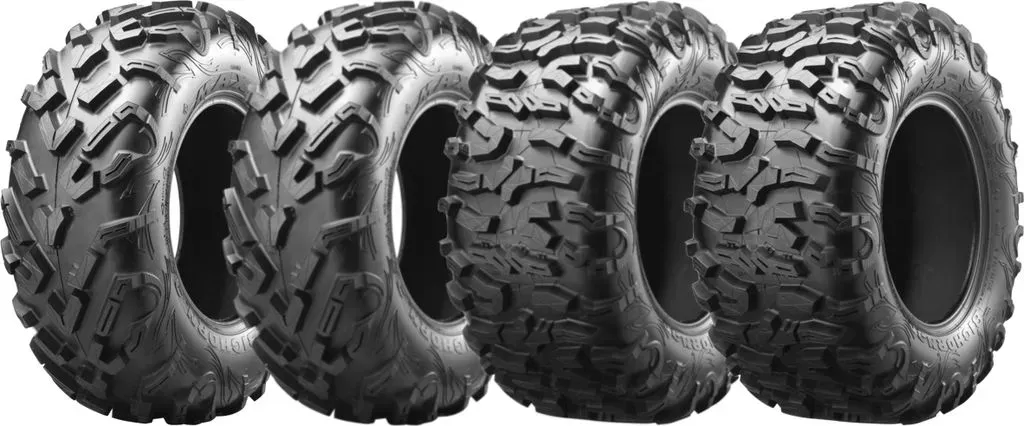 Kategorie: Sonstige Reifen - Maxxis - GTIN:0758913590988 - MAXXISReifensatz Bighorn 2.0 MU-09 & MU-10 Diese Light-Version des legendären Bighorn zeigt durch das schlankere Profil, aber bei voller Performance auf verschiedenen Untergründen große Kraftstoffeffizienz und mehr Traktion. Die Radial-Konstruktion mit verbesserten stoßdämpfenden Eigenschaften bietet hohe Laufruhe. Das nicht laufrichtungsgebundene Profil sorgt für präzises Kurvenverhalten, extremes Kletterverhalten und starke Beschleunigung. Der Bighorn 2. Marke:MaxxisNominaler Reifendurchmesser in Zoll:25Breite in Zoll:8.00Felgendurchmesser in Zoll/ mm:12Lastindex 1:43Speedindex:NBruttogewicht kg:8.6Marke:MaxxisNominaler Reifendurchmesser in Zoll:25Breite in Zoll:10.00Felgendurchmesser in Zoll/ mm:12Lastindex 1:50Speedindex:NBruttogewicht kg:11Lieferumfang (ohne Felge): 2x25x8-12 43N und 2x 25x10-12 50N - 480,90 Euro bei Kaufland.de - gefunden von billiger.de Ein komplettes Reifensatz-Angebot, das speziell für gängige ATV-Modelle wie Linhai Quadix zugeschnitten ist. ![]() ![]()