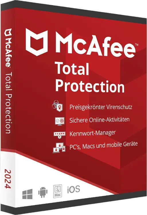 Kategorie: Firewalls & Antiviren - McAfee - GTIN:0731944751719 - McAfee Total Protection McAfee Total Protection bietet preisgekrönten Virenschutz und sowie viele weitere Funktionen, mit denen Ihre Computer (PC und Mac) und Ihre Mobilgeräte abgedeckt werden. Wir schützen Sie, damit Sie sich auf Ihre wichtigsten Aufgaben konzentrieren können. McAfee Total Protection bietet Schutz auf mehreren EbenenPreisgekrönter Virenschutz Abwehr von Viren und Online-Bedrohungen durch eine Kombination von Cloud-basiertem Online- und Offline-Schutz.Sichere Internetnutzung Vermeidung von Online-Bedrohungen wie Schadsoftware und Phishing durch Sicherheitsbewertungen und Blockierung böswilliger Websites.PC-Optimierung Benutzerfreundliche Tools, mit denen PCs sauber und wie neu bleiben und nicht benötigte Dateien entfernt und Anwendungen aktualisiert werden.Unsere Rundum- Ein McAfee-Experte entfernt auftretende Viren von Ihrem PC, oder Sie erhalten ... - 11,95 Euro bei Bluedata - gefunden von billiger.de Dieses Angebot bietet eine lange Laufzeit von 3 Jahren für 1 Gerät inklusive VPN zu einem fairen Preis. ![]() ![]() McAfee Total Protection & VPN 2026 | 1 Gerät | 3 Jahre | Jetzt günstig kaufen