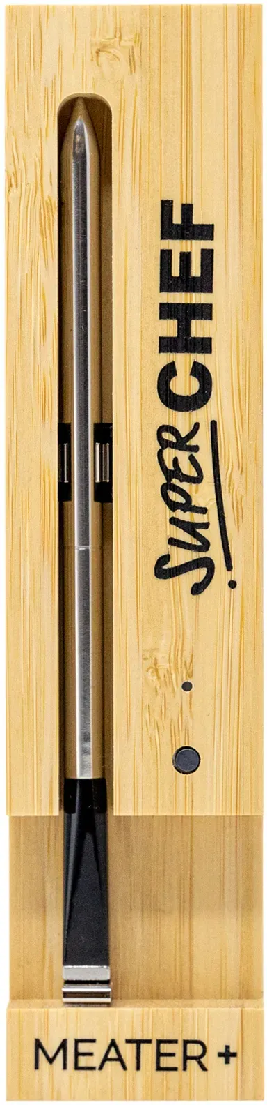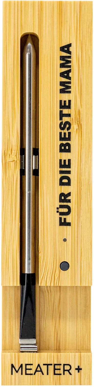 Verfügbarkeit: 1-3 Tage - Kategorie: Grillzubehör - MEATER - Meater Plus Für die Beste Mama Kabelloses GrillthermometerKabelloses Grillthermometer in edlem Holzdesign €“ €žFür die Beste Mama€œ-Gravur für echte Grillmeisterinnen. Jetzt die Meater Plus Sonderedition sichern! Der Meater Plus: ein kabelloses Fleischthermometer für perfekte Fleischzubereitung. Es funktioniert über bluetooth und ist mit dem smart device verbunden. Zum Laden wird es in die mitgelieferte Ladeschale gelegt und ist nach der Ruhephase sofort wieder einsatzbereit. Gesteuert wird das Thermometer über eine App (kostenlos für iOS und Android) am Smartphone oder Tablet. Die übersichtliche Anzeige führt Schritt für Schritt durch den Kochvorgang. Sobald das Fleisch fertig ist, wird der Grillmeister auf seinem Gerät benachrichtigt. Im Gegensatz zu den bekannten Kabel-Fleischthermometern, sind die Messfühler für die Kern- und Umgebungstemperatur zusammen mit dem bluetooth-Sender im Fühl... - 69,90 Euro bei grimm-daheim - gefunden von billiger.de Die "Super Chef" Edition ist eine weitere personalisierte Option für 69,90 Euro, die sich gut als Geschenk eignet. ![]() ![]() Meater Plus Super Chef Kabelloses Grillthermometer
