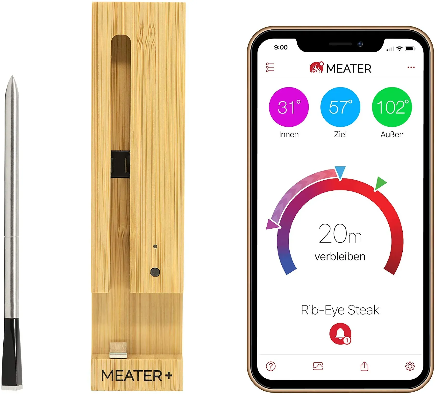 6 Händlerangebote bei billiger.de - Kategorie: Grillzubehör - MEATER - Entwickelt mit modernster Technologie für alle Fans von traumhaftem Fleisch- und Fischgenuss. Ob Hobbykoch oder Kochprofi - auch Spitzenkoch Johann Lafer ist von dem Gelingen mit dem smarten Fleischthermometer überzeugt und hat dieses bereits fest in sein Inventar aufgenommen. Mit MEATER gelingen saftigste Ergebnisse auf den Punkt. Immer stressfrei. Immer einfach. Immer perfekt. - GTIN:5060480240407 Für 76,90 Euro erhalten Sie hier ein solides Meater Plus von einem bekannten Anbieter. ![]() Meater Plus, kabelloses Fleischthermometer