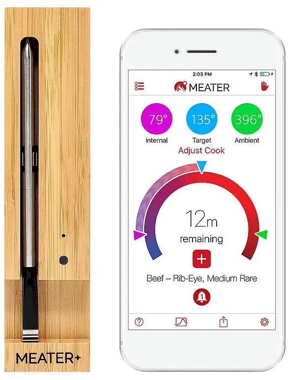Kategorie: Grillzubehör - MEATER - GTIN:5060480240124 - Meater Plus Kabelloses Grillthermometer Der Meater Plus, ein kabelloses Fleischthermometer für perfekte Fleischzubereitung. Es funktioniert über bluetooth und ist mit dem smart device verbunden. Zum Laden wird es in die mitgelieferte Ladeschale gelegt und ist nach der Ruhephase sofort wieder einsatzbereit. Gesteuert wird das Thermometer über eine App (kostenlos für iOS und Android) am Smartphone oder Tablet. Die übersichtliche Anzeige führt Schritt für Schritt durch den Kochvorgang. Sobald das Fleisch fertig ist, wird der Grillmeister auf seinem Gerät benachrichtigt. Im Gegensatz zu den bekannten Kabel-Fleischthermometern, sind die Messfühler für die Kern- und Umgebungstemperatur zusammen mit dem bluetooth-Sender im Fühler verbaut.Der Meater Plus ist mit einer Bluetooth-Reichweite von 50 Metern ausgestattet. Damit sind Hauswände, dicke Deckel oder auch Smoker gar kein Problem mehr. Mögli... - 77,79 Euro bei grimm-daheim - gefunden von billiger.de Dieses Angebot ist ein sehr preisgünstiger Einstieg in die Welt der kabellosen Meater-Thermometer. ![]() ![]()