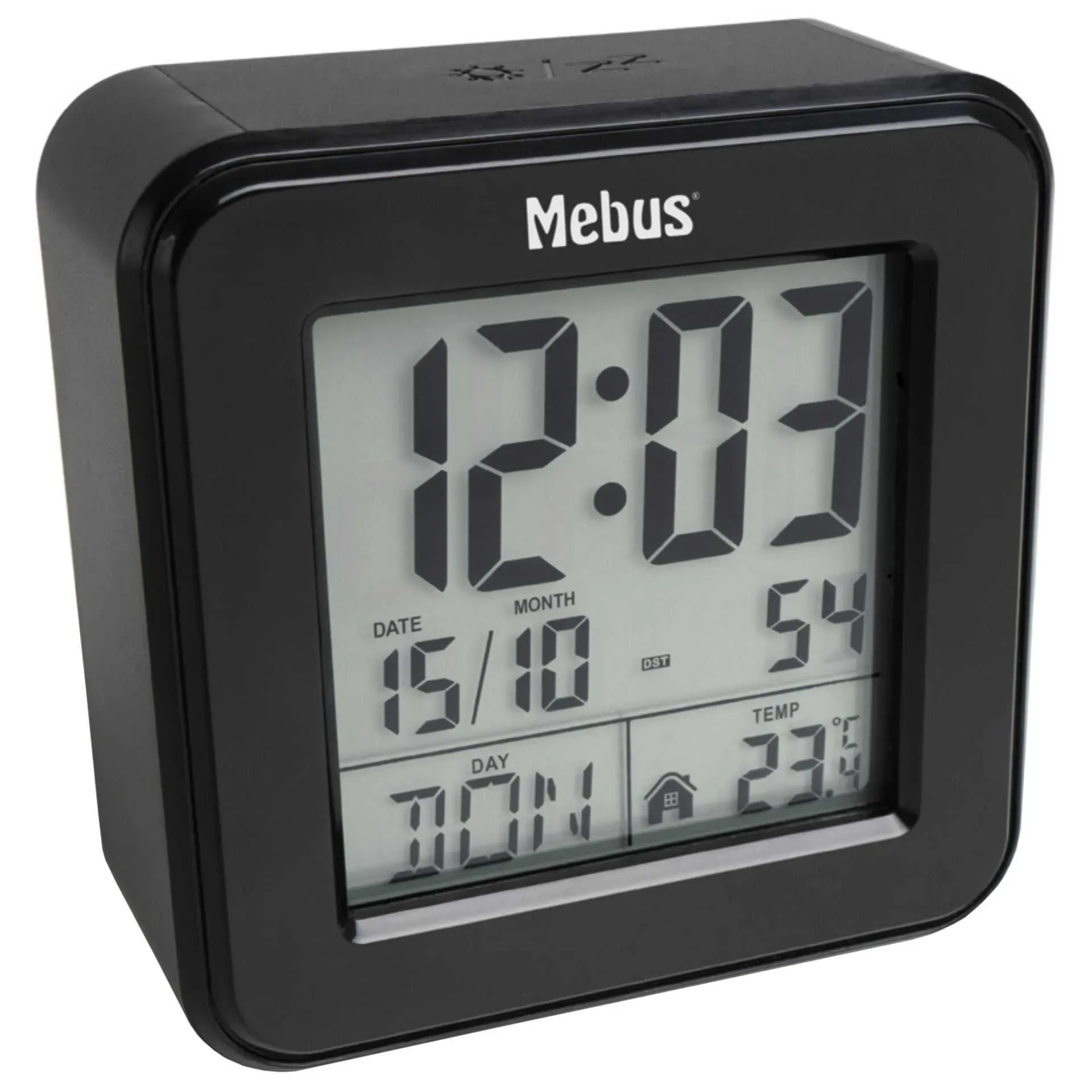 Auf Lager Versand durch AmazonMebus digitaler Funk-Wecker mit Thermometer, Beleuchtung und Kalender, kompakt & stabil/Farbe: Schwarz/Modell: 25595