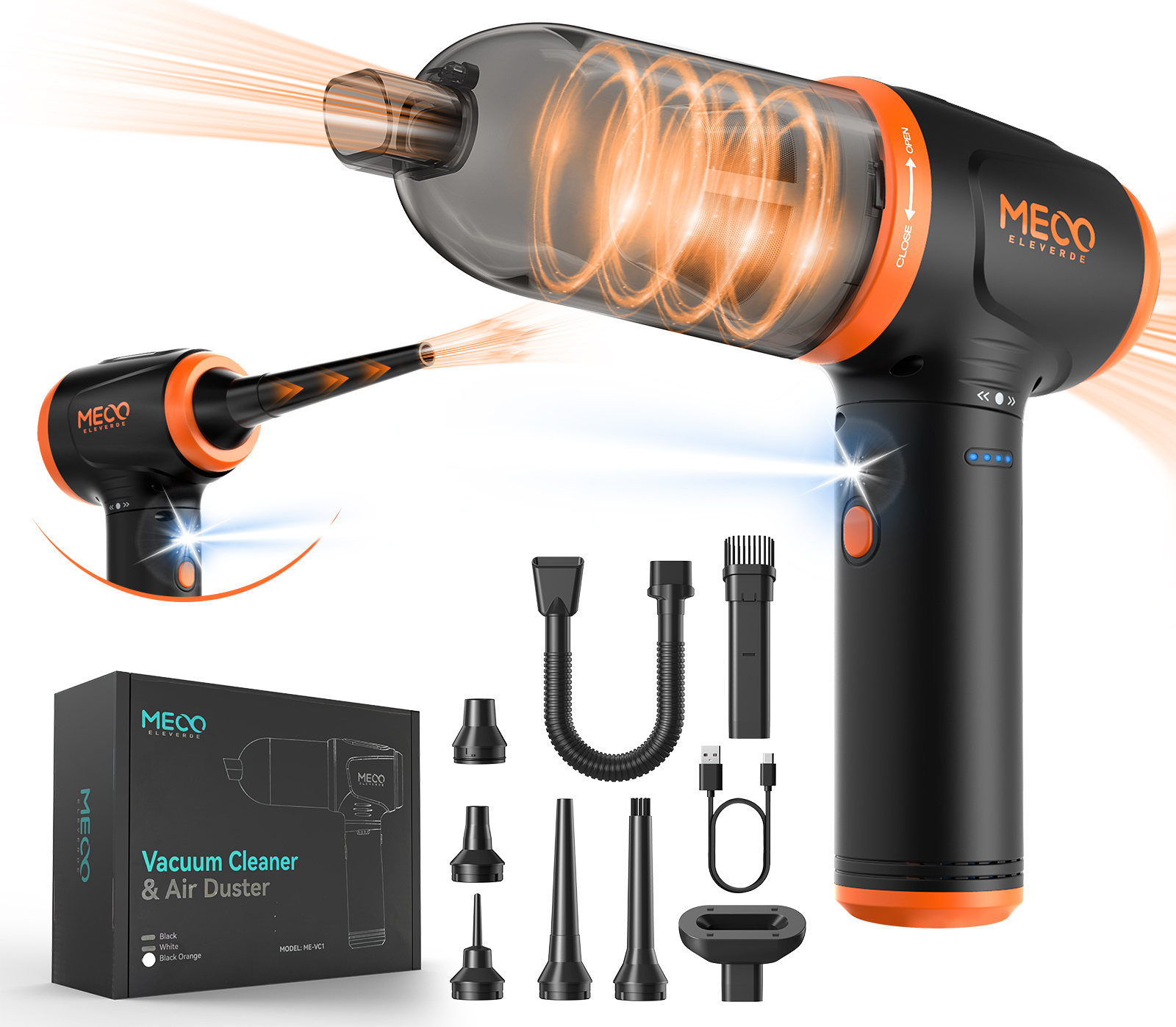 Auf Lager Versand durch AmazonMECO ELEVERDE Handheld-Staubsauger Kabellos 16000 PA, 4-in-1 Kleiner Staubsauger, Luftgebläse Tragbar Kabellos mit LED-Licht, für Haus/Auto/Büro/Computer Reinigung