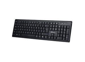 Tastaturen Lifestyle Technik Computer Eingabegeräte - - Das überzeugende Duett - das MediaRange MROS107 Tastatur-Maus-Set kabellos schwarzWarum einzeln kaufen, wenn es auch mit dem MediaRange MROS107 Tastatur-Maus-Set kabellos schwarz geht? Dieses Komplett-Set ist die professionelle Ausstattung für Ihren Arbeitsplatz, ganz gleich ob im Homeoffice oder im Büro. Sie profitieren mit dem MediaRange-Set von der Unabhängigkeit kabelloser Verbindungen - das sorgt für mehr Komfort und ist sehr hilfreich beim Einrichten Ihres Arbeitsplatzes.Was kann die Maus?Flüssige und präzise Bewegungsabläufe können Sie mit dieser Maus mühelos als Rechts- und als Linkshänder ausführen. 3 Tasten sowie ein integriertes Scrollrad helfen Ihnen, Ihr Gerät angenehm zu steuern und präzise zu arbeiten. Wie schnell die Reaktion des Mauszeigers ist, können Sie am Wert der Auflösung ablesen. Hier gilt: Je mehr DPI (dots per inch), desto schneller. Die Auflösung beträgt hier 1.200 dpi. Eine präzise Datenübertragung rt eine flüssige Mauszeigerbewegung. Dies ist hier durch den optischen Sensor gewährleistet. Die Batterien verleihen diesem Produkt die nötige Power für Ihre Aktionen.Was bietet die Tastatur?Hier sehen Sie wichtige Eigenschaften, die die Tastatur auszeichnen: StellfüßeNummernblockTastatur-BatteriestatusanzeigespritzwassergeschütztkabellosDas Produkt-Set ist geeignet für die Nutzung mit Windows, Mac, Linux, das heißt, dies sind die Voraussetzungen, die erfüllt sein müssen. Betrieben wird dieses ... Diese kabellose Tastatur für 14,79 Euro bietet Bewegungsfreiheit und ein aufgeräumtes Arbeitsumfeld. ![]() MediaRange MROS111 Tastatur kabellos schwarz