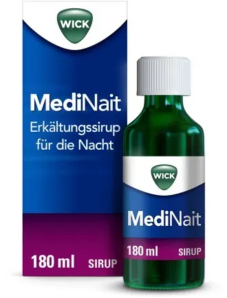 78,94 /l - Kategorie: Arzneimittel - WICK - GTIN:4015600147006 - PZN:01689009 - WICK MediNait Erkältungssirup 180 ml - rezeptfrei - von WICK Pharma - Zweigniederlassung der Procter & Gamble GmbH - Sirup - 180 ml - 14,21 Euro bei DocMorris Apotheke - gefunden von billiger.de Dieses Angebot ist das günstigste für Wick MediNait Erkältungssirup für die Nacht in der 180 ml GröÃ?e bei Shop Apotheke DE. ![]() ![]() Wick MediNait Erkältungssirup für die Nacht 180 ml Sirup