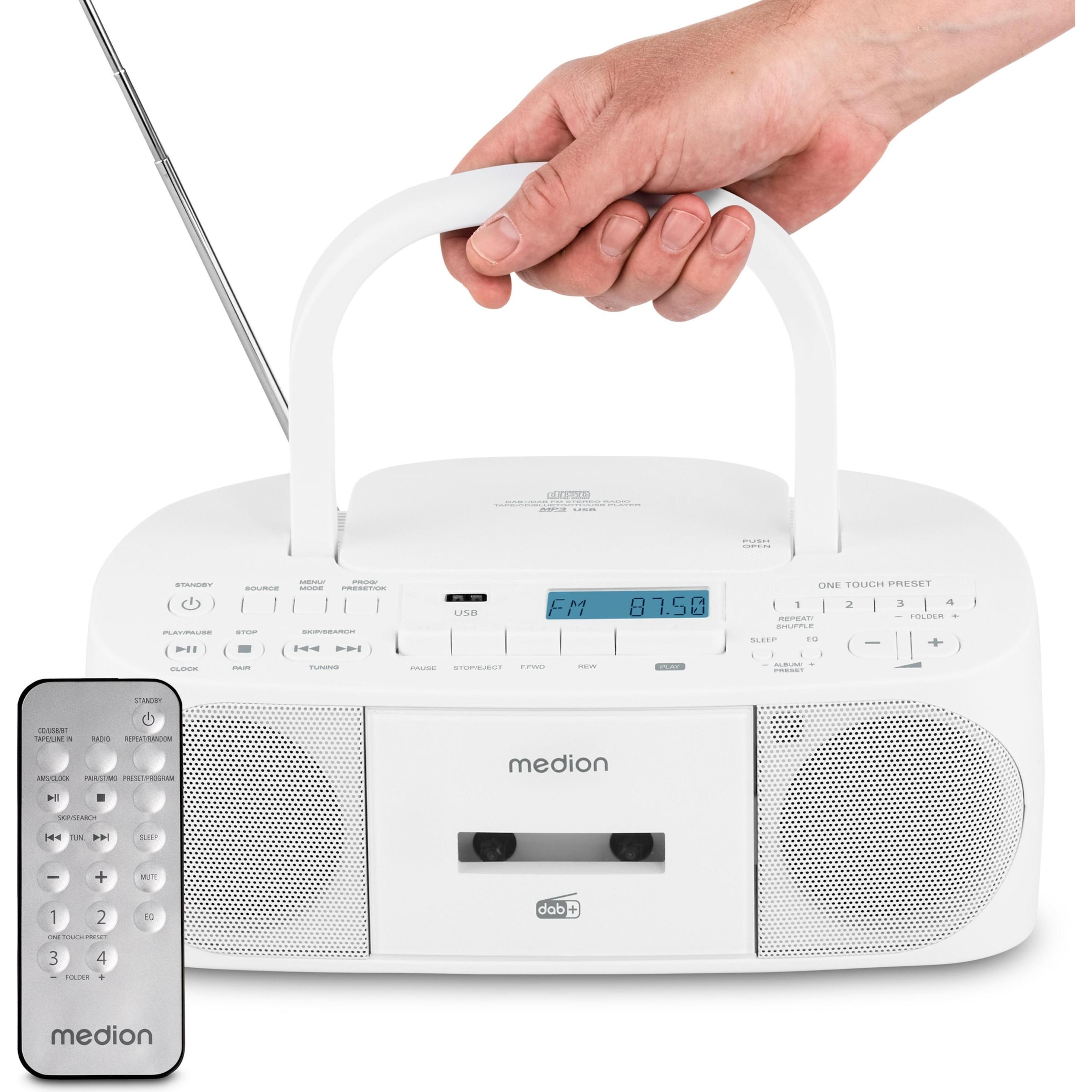 keine Angabe Nur noch 8 auf LagerMEDION DRX-1 Plus Boombox (tragbares DAB+ UKW Radio, Bluetooth, CD-Player, MP3, Kassette, Kopfhöreranschluss, Stereo Sound System, AUX, Netz & Batterie) schwarz