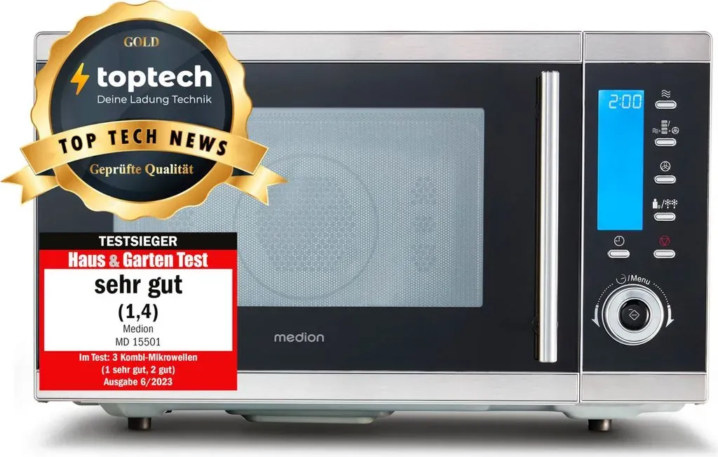 Medion md 15501 META PreisvergleichMit dem Meta-Preisvergleich suchen Sie gleichzeitig bei den großen Preisvergleich Portalen!Jetzt live Suche nach medion md 15501 starten! Medion md 15501 KaufberatungDie Medion MD 15501 ist eine 4-in-1 Mikrowelle mit Mikrowelle, Ober- und Untergrill sowie Heißluftfunktion, die sich durch ein gutes Preis-Leistungs-Verhältnis auszeichnet. Sie bietet 900 Watt Mikrowellenleistung, 1100 Watt Obergrill, 500 Watt Untergrill und 2500 Watt Heißluftleistung bei einem Garraumvolumen von 25 Litern[1][2][3]. Wichtige Merkmale und Vorteile:
