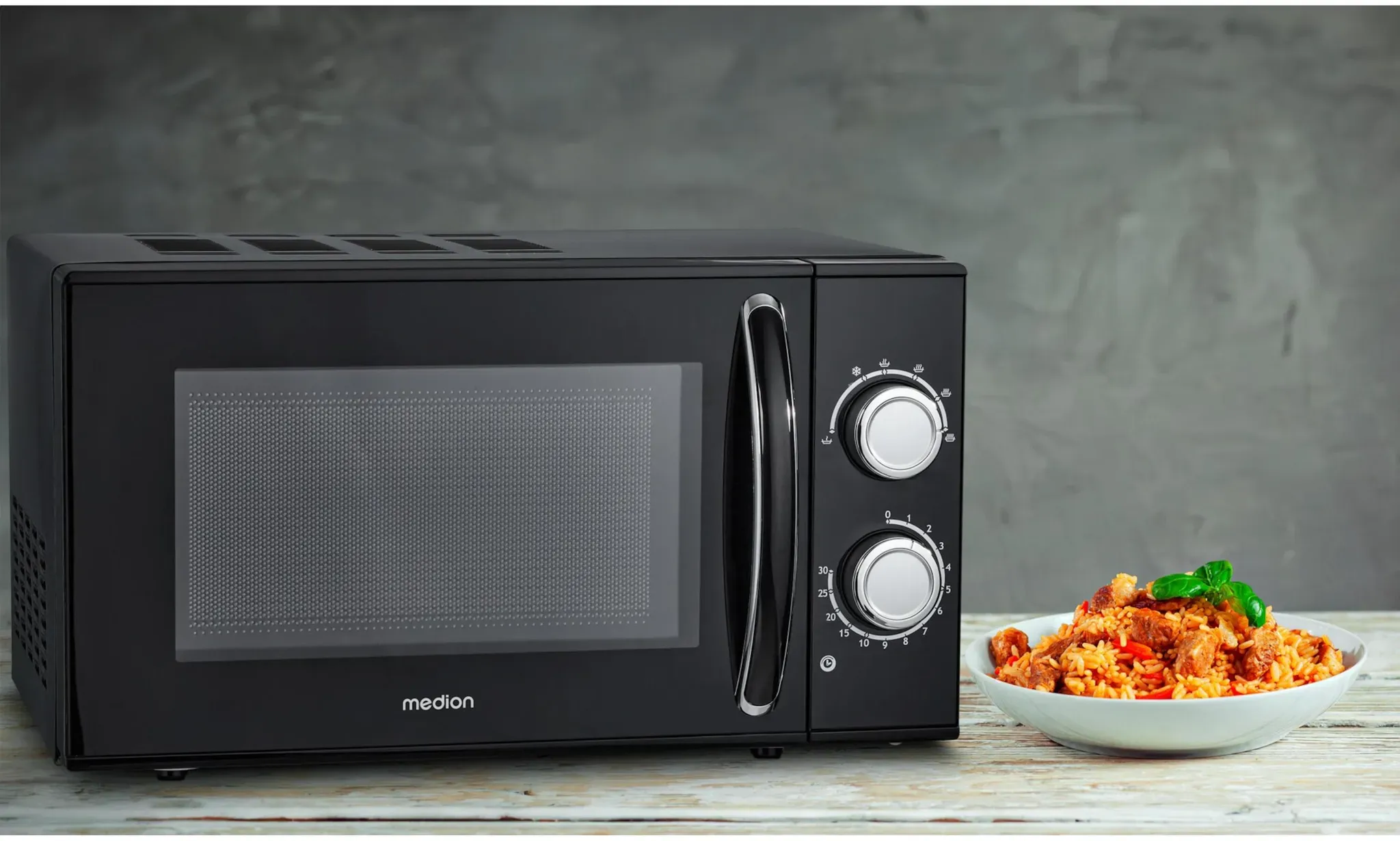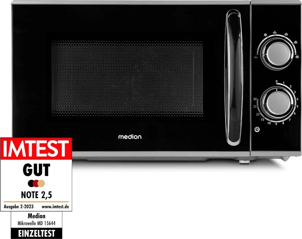 Kategorie: Mikrowellen - Medion - GTIN:4061275220698 - Mikrowelle MD 15644, 700 Watt Leistung, ca. 17 l Kapazität, 6 Leistungsstufen, Auftaufunktion, Timer Einfache Reinigung: Durch die Edelstahlfront und den lackierten Innenraum ist Schmutz kein Thema für Sie Besonders effizient: Mit der Auftaufunktion können Sie gefrorene Nahrungsmittel schonend erwärmen Perfekte Hitze: Stellen Sie die Mikrowelle mit sechs Leistungsstufen optimal ein Lieferumfang: Mini Mikrowelle MD15644, Drehteller - 50,87 Euro bei Amazon Marketplace Kitchen - gefunden von billiger.de ![]() ![]() Medion MD 15644 Schwarz