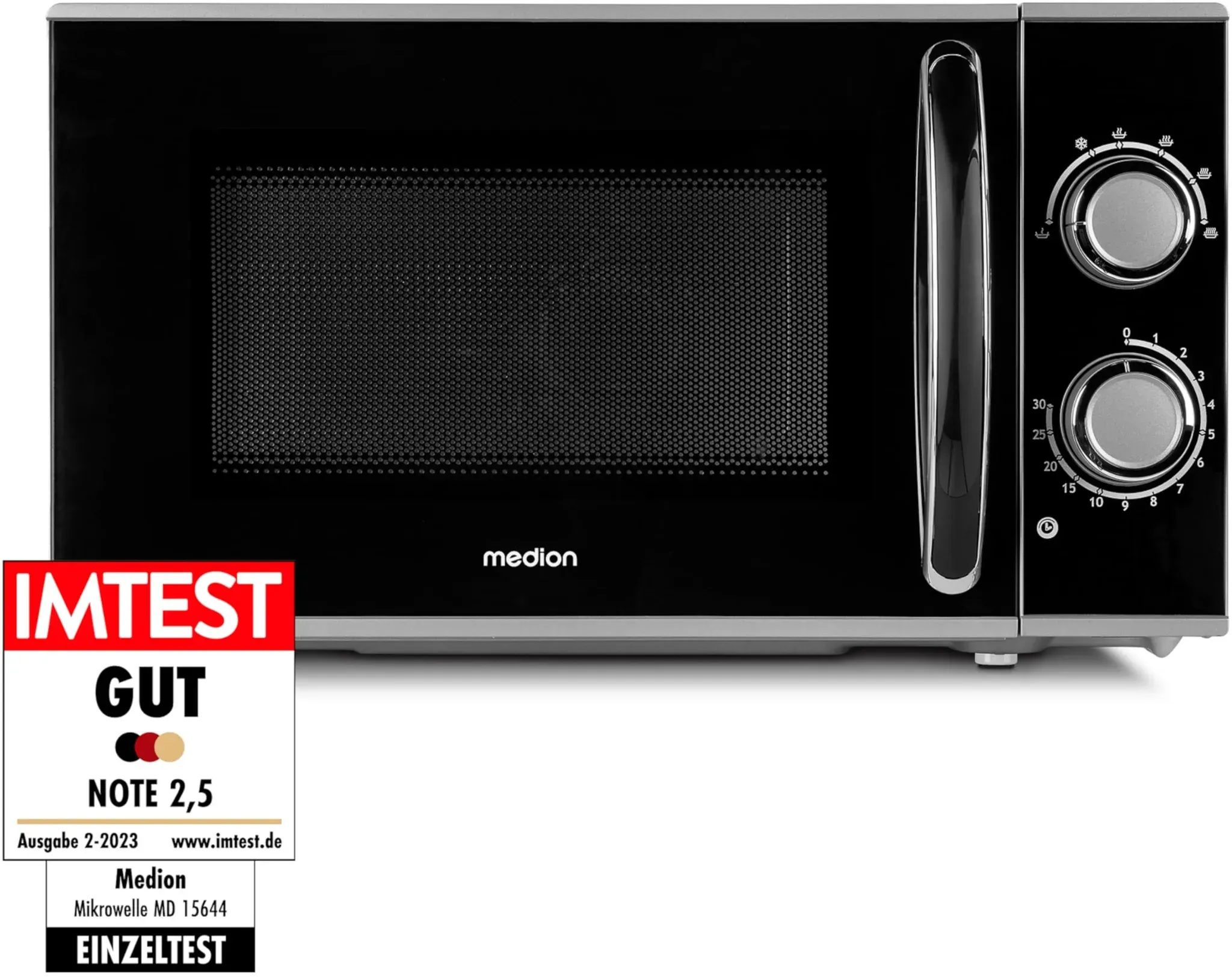 Auf Lager Versand durch AmazonMEDION Mikrowelle, ca. 700 Watt Leistung, ca. 17 Liter Kapazität, 6 Stufen, Auftaufunktion, MD 15644, schwarz/silber