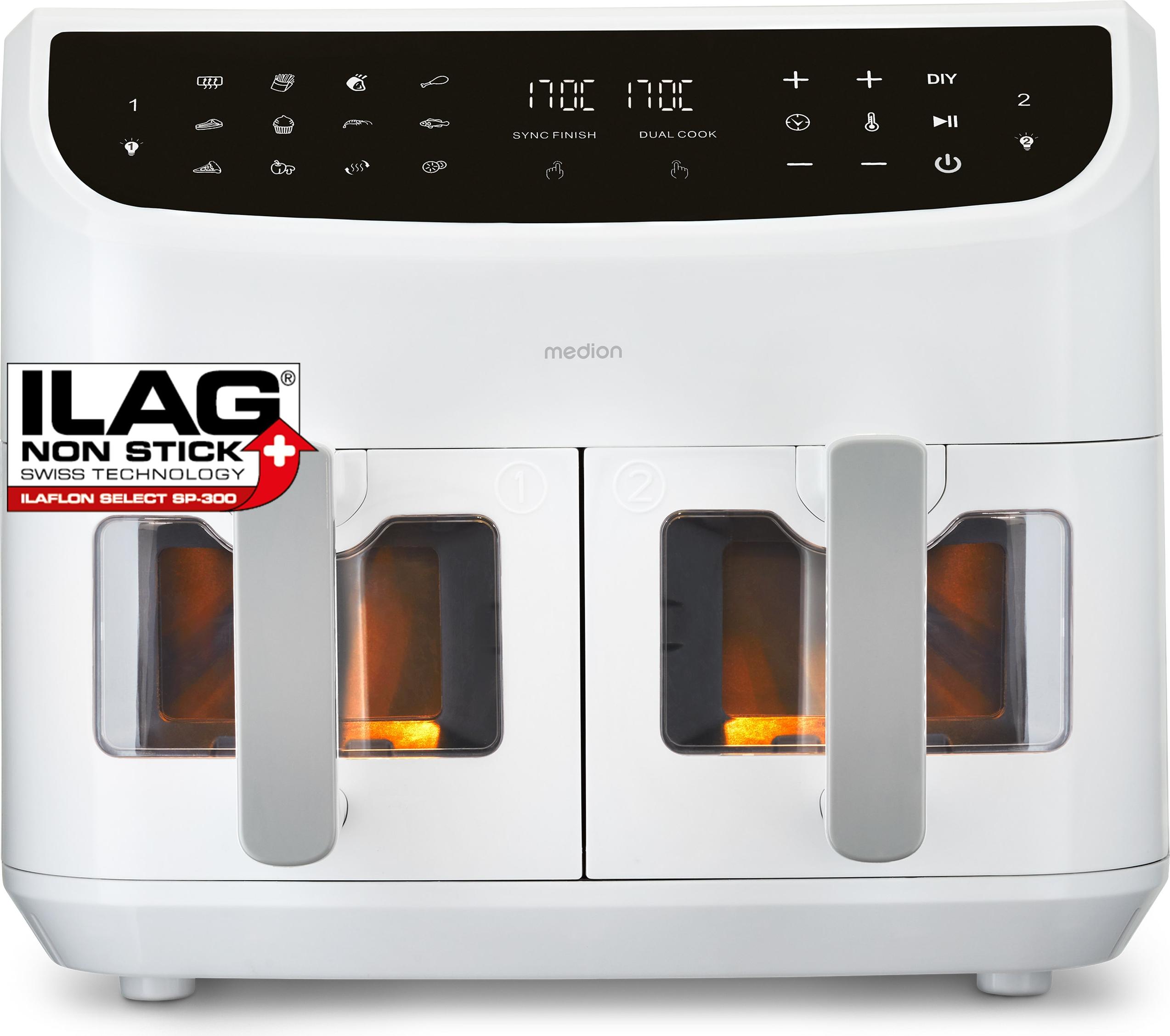 Sofort lieferbar, Lieferzeit max. 1-3 WerktageMedion MD 11760 Life P20 XXL Twin Doppelzonen-Heißluftfritteuse 8,7 l, weiß