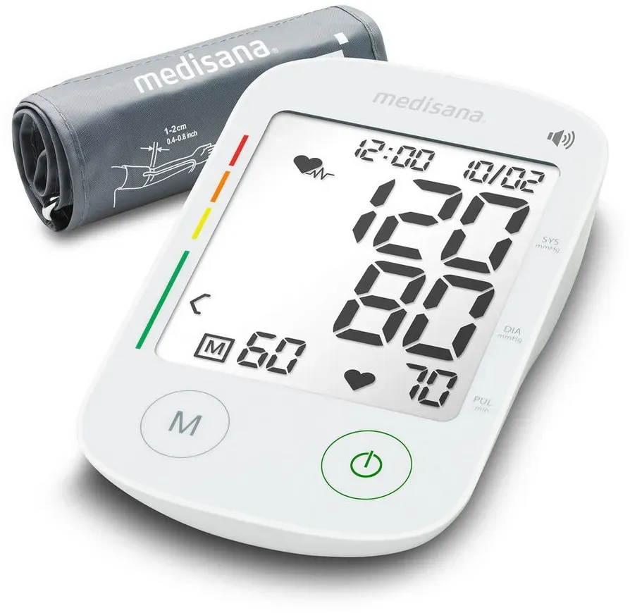 Medisana - EAN: 04015588511783 - Normale Blutdruckwerte liegen etwa bei 120 zu 80 mmHg. Bei der täglichen Messung lässt sich schnell erkennen, ob es kurzfristige Veränderungen oder lang anhaltende Tendenzen gibt. Das Oberarm-Blutdruckmessgerät BU 535 Voice zeigt mit großen Ziffern präzise die Messergebnisse an und kann sie auch über Sprache ausgeben. Das BU 535 Voice bietet neben der Einstufung der Messwerte durch die WHO-Farbskala auch eine automatische Arrhythmie-Anzeige. Die je 120 Speicherplätze für zwei Benutzer ermöglichen es, den Blutdruck dauerhaft und präzise im Blick zu halten. Zusätzlich berechnet es den Durchschnittswert der letzten drei Messwerte. - bei alternate.de - aus Yadore Produktdaten Galaxus.de bietet das BU 535 Voice für 36.64 Euro an, was ein gutes Angebot für ein Gerät mit Sprachausgabe ist. ![]() Medisana, Blutdruckmessgerät, BU 535 Voice (Blutdruckmessgerät Oberarm)