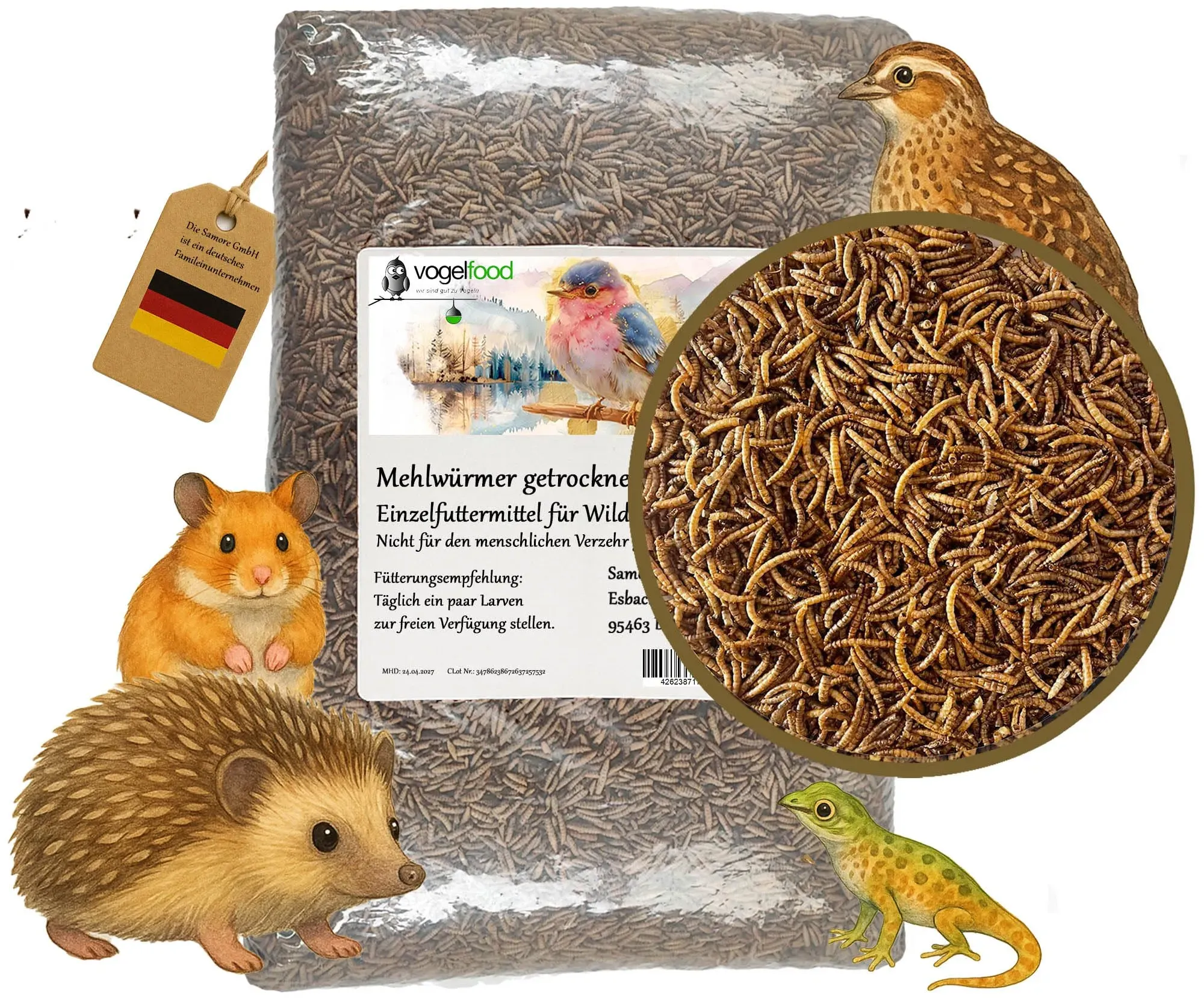 Kategorie: Vogelfutter - Samore - GTIN:4260289336924 - Vielseitiges Futter: Getrocknete Mehlwürmer für Vögel, Fische, Nager, Reptilien und Igel. Eiweißquelle: Reich an hochwertigem Protein für Energie und Wachstum. Fördert gesunde Ernährung: Unterstützt die natürliche Ernährung von Vögeln, Nagetieren und Reptilien. Einfach zu lagern: Langanhaltend haltbar und platzsparend in der Aufbewahrung. Einfache Fütterung: Kann direkt gefüttert oder in speziellen Futterstationen angeboten werden. - 36,99 Euro bei Amazon Marketplace Lawn & Garden - gefunden von billiger.de ![]() ![]() uinclu Naturprodukt Ambiopet 5 kg Mehlwürmer getrocknet für Nager Vögel Reptilien Fisch Igel auch Koifutter