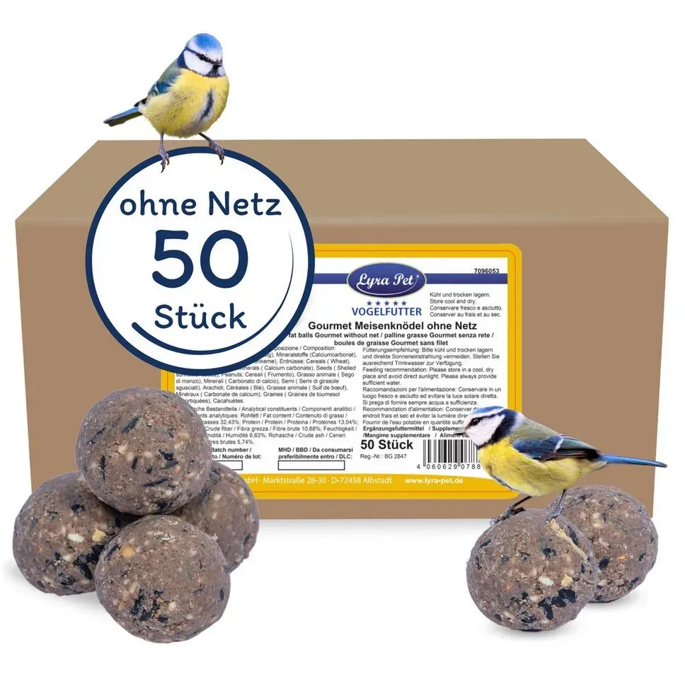 lieferbar-in 4-5 Werktagen bei dirLyra Pet 50 - 200 Stk. Lyra Pet Premium Meisenknödel ohne Netz 85 g, 50St.