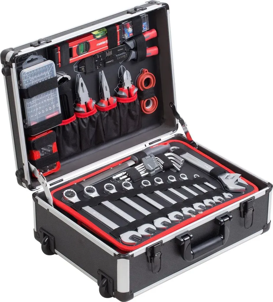 Zustand: Neu - Werkzeugkästen - Toolland a land of possibilities Velleman - HSET260 - EAN: 5410329680107 - Zugänglich Einfache Handhabung Wirksam - bei Amazon.de Ein beliebter 156-teiliger Werkzeugtrolley von Meister, der eine gute Balance zwischen Preis und Umfang bietet und sich für viele Anwendungen eignet. ![]() ![]() Meister Werkzeugtrolley 156-teilig - Werkzeug-Set-Mit Rollen- Teleskophandgriff/Profi Werkzeugkoffer befüllt/Werkzeugkiste fahrbar /Werkzeugbox komplett mit Werkzeug, Schwarz/Silber, 8971440