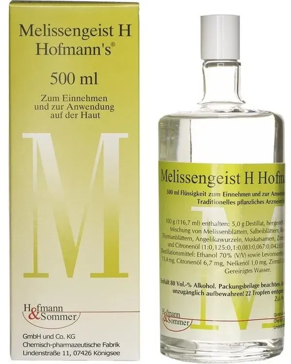 23,96 /l - Kategorie: Massageöl - DocMorris - GTIN:4150800413084 - DocMorris Melissengeist EN 250 ml - rezeptfrei - von DocMorris - Flüssigkeit - 250 ml - 5,99 Euro bei DocMorris Apotheke - gefunden von billiger.de Dieses Angebot von Hofmann's Melissengeist in einer größeren Flasche ist eine gute Wahl für regelmäßige Anwender, die Wert auf ein gutes Preis-Leistungs-Verhältnis legen. ![]() ![]() Hofmann`s Melissengeist H Hofmann s 250 ml, zur Unterstützung der Verdauung und der Hautdurchblutung