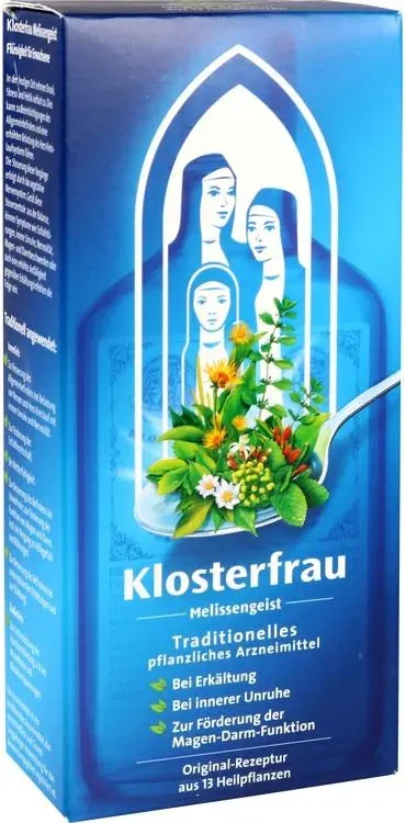 Kategorie: Nahrungsergänzungsmittel - Hofmann`s - GTIN:4260088081308 - Melissengeist H ist ein traditionelles pflanzliches Arzneimittel aus bewährten Heilkräutern. Flüssigkeit zum Einnehmen und zur Anwendung auf der Haut. Unterstützung der Verdauungfunktion und Hautdurchblutung. wird innerlich angewendet zur Unterstützung der Verdauungsfunktion. äußerlich zur Unterstützung der Hautdurchblutung. Diese Angaben beruhen ausschließlich auf überlieferung und langjähriger Erfahrung. - 6,99 Euro bei Amazon Marketplace Health & Personal Care - gefunden von billiger.de Eine mittelgroße Flasche Klosterfrau Melissengeist zu einem guten Preis, passend für den regelmäßigen Gebrauch. ![]() ![]() Klosterfrau Melissengeist 155 ml
