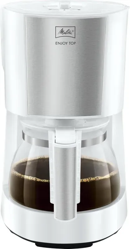 Kategorie: Kaffeemaschinen - Melitta - GTIN:4006508214464 - Der Melitta Enjoy Top 1017-03 ist ein stylischer Kaffeefilter mit Glasgefäß und Edelstahl-Akzente, der bis zu 10 Tassen brauen kann. Mit dem AromaSelector können Sie die Stärke individuell einstellen. Funktionen wie automatische Abschaltung, Tropfstopp und spülmaschinengeeignete Teile sorgen für zusätzlichen Komfort. - 44,99 Euro bei Joybuy - gefunden von billiger.de Diese Kaffeemaschine bietet eine Glaskanne und ist eine gute Option im mittleren Preissegment. ![]() ![]() Melitta ENJOY TOP GLAS 1017-04 N/ACIER BROSS